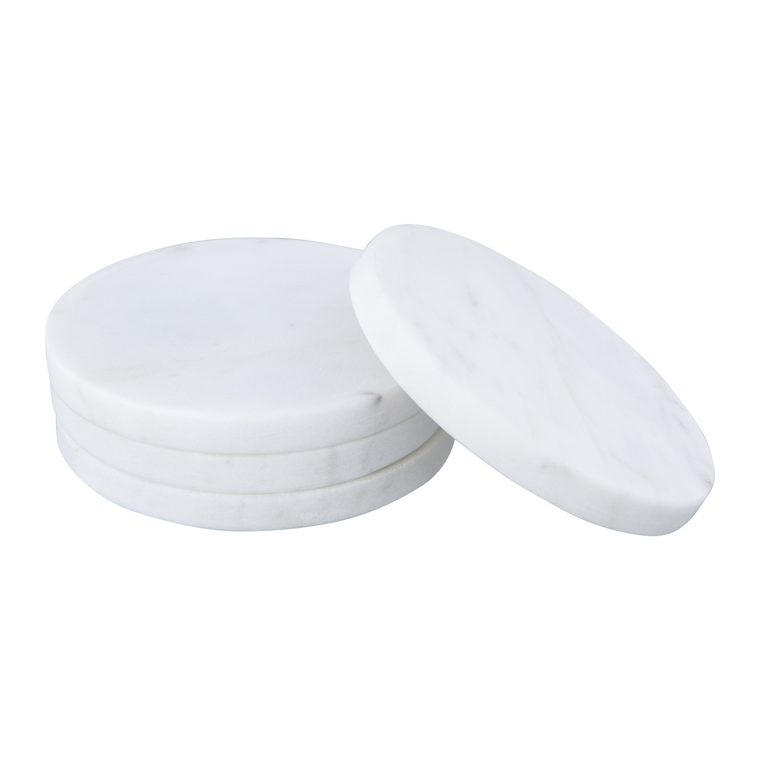 Catalog Name: 4" Round Marble Coasters w/ Mango Wood Holder, White & Natural, Set of 5