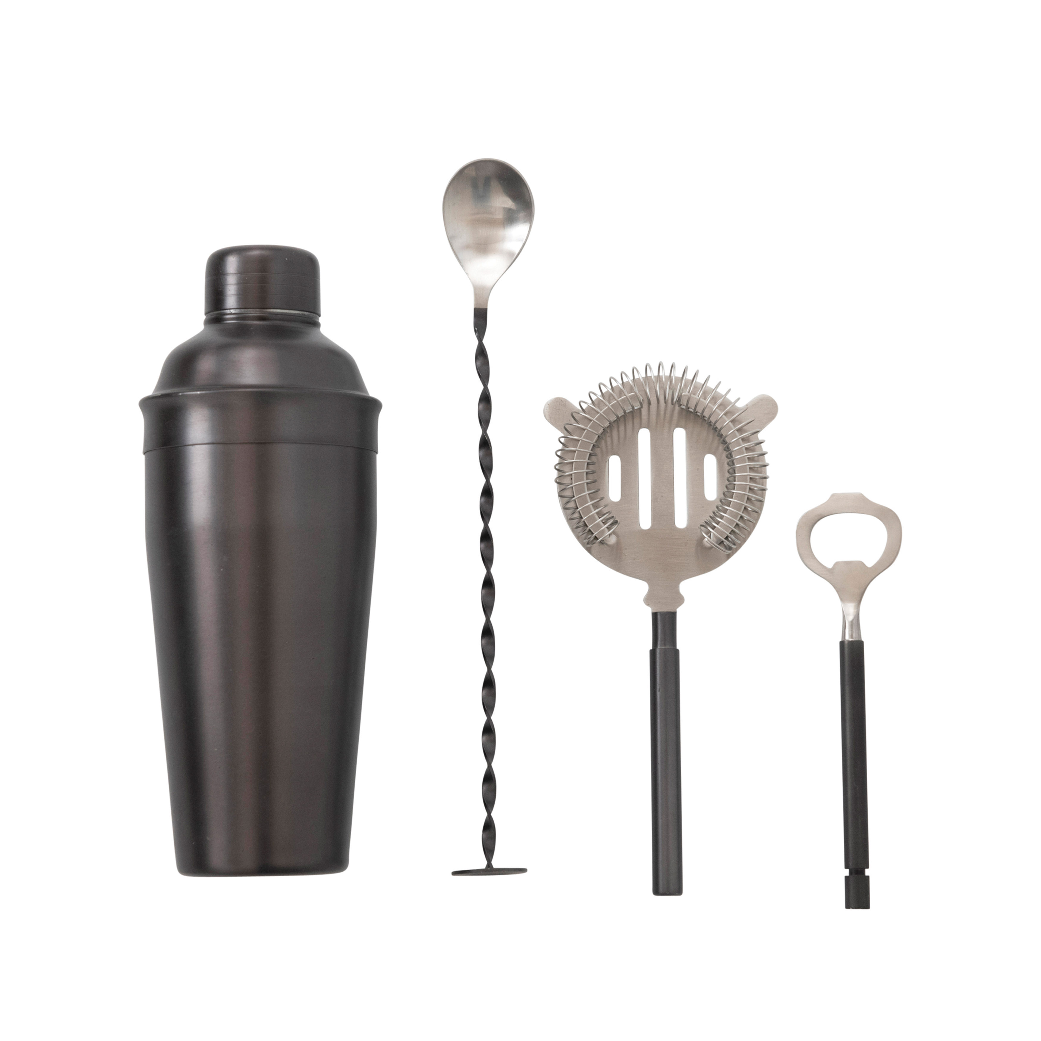Catalog Name: 10-1/4"L x 11-3/4"W x 3-3/4"H Stainless Steel Bar Tools, Pewter Finish, Boxed Set of 4