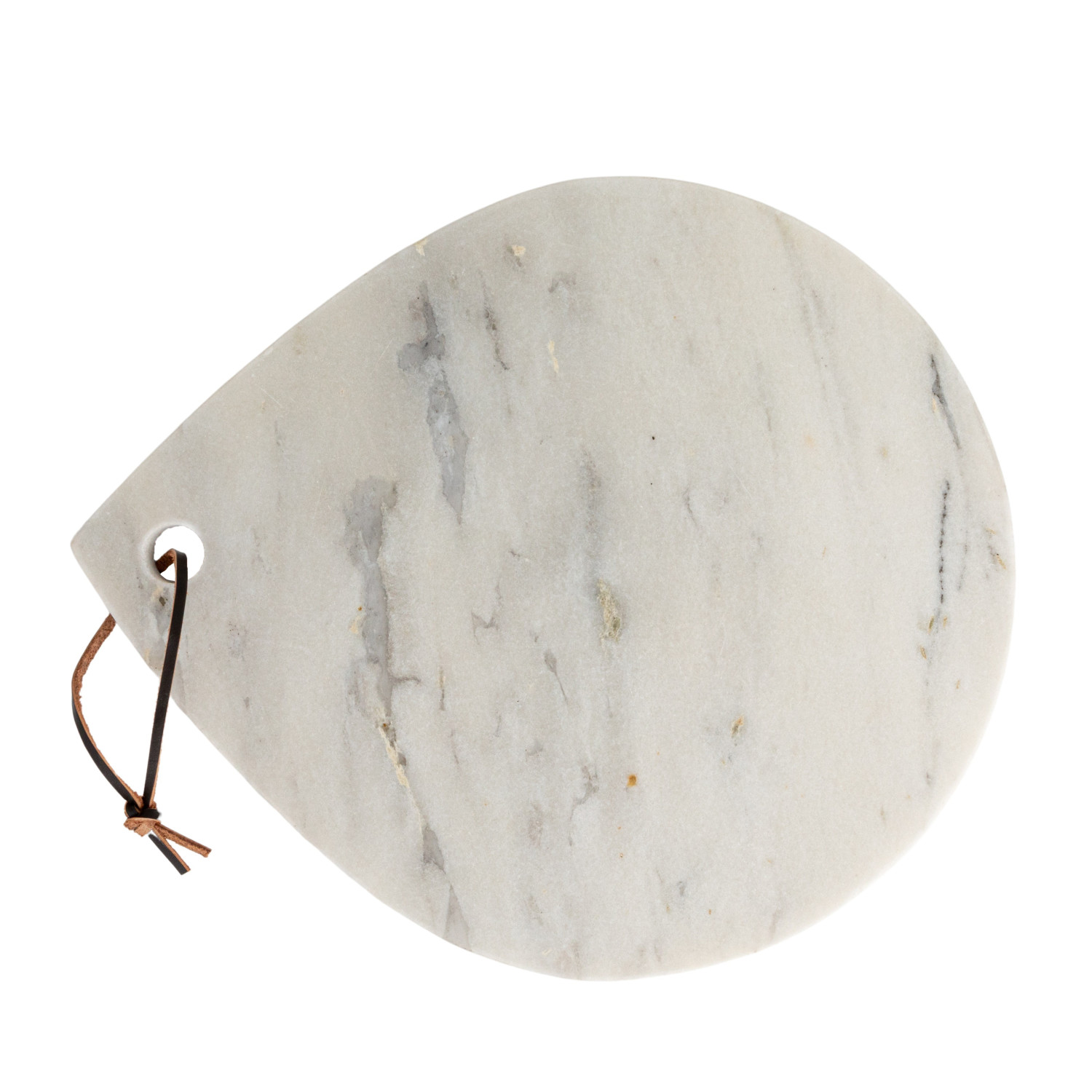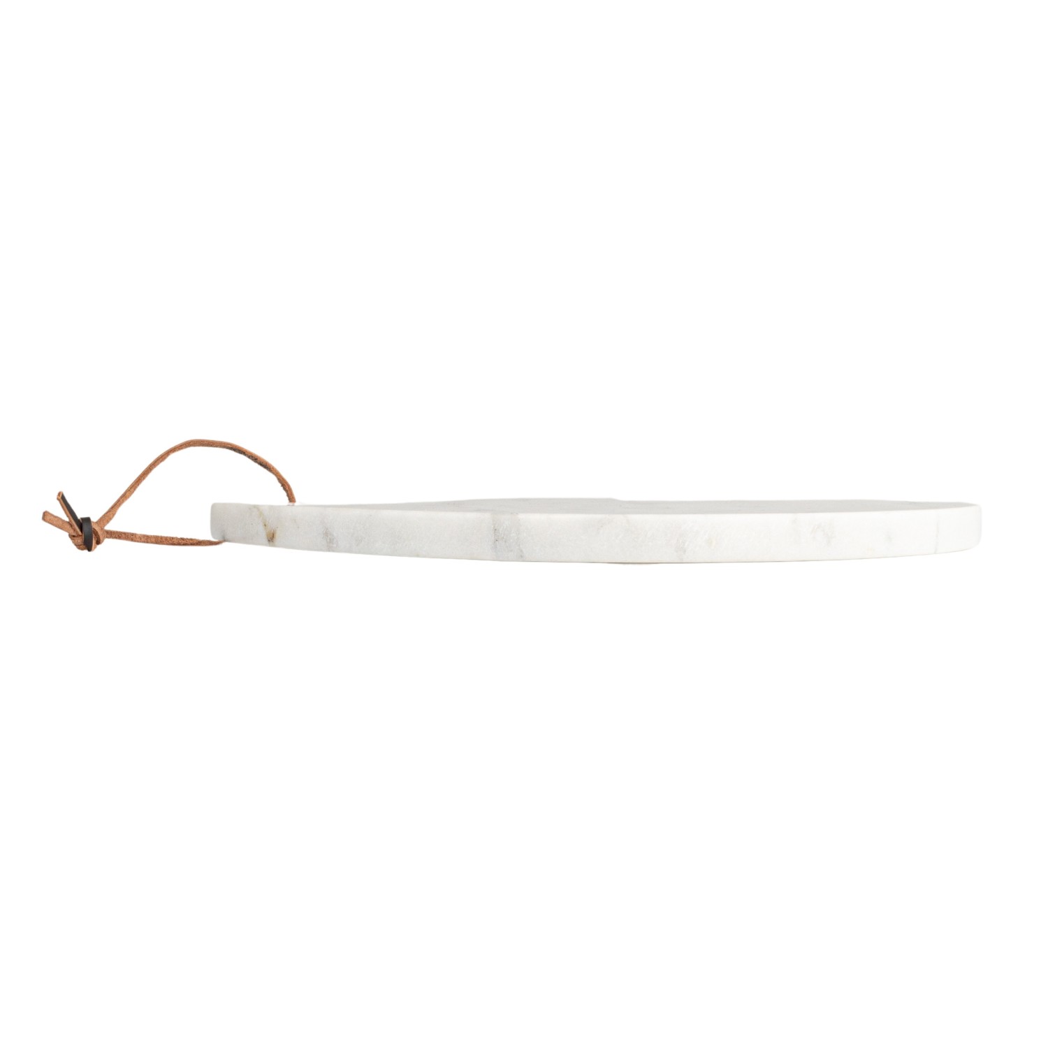 Catalog Name: 14"L x 12"W Marble Cheese/Cutting Board w/ Handle & Leather Tie, White Melange (Each One Will Vary)