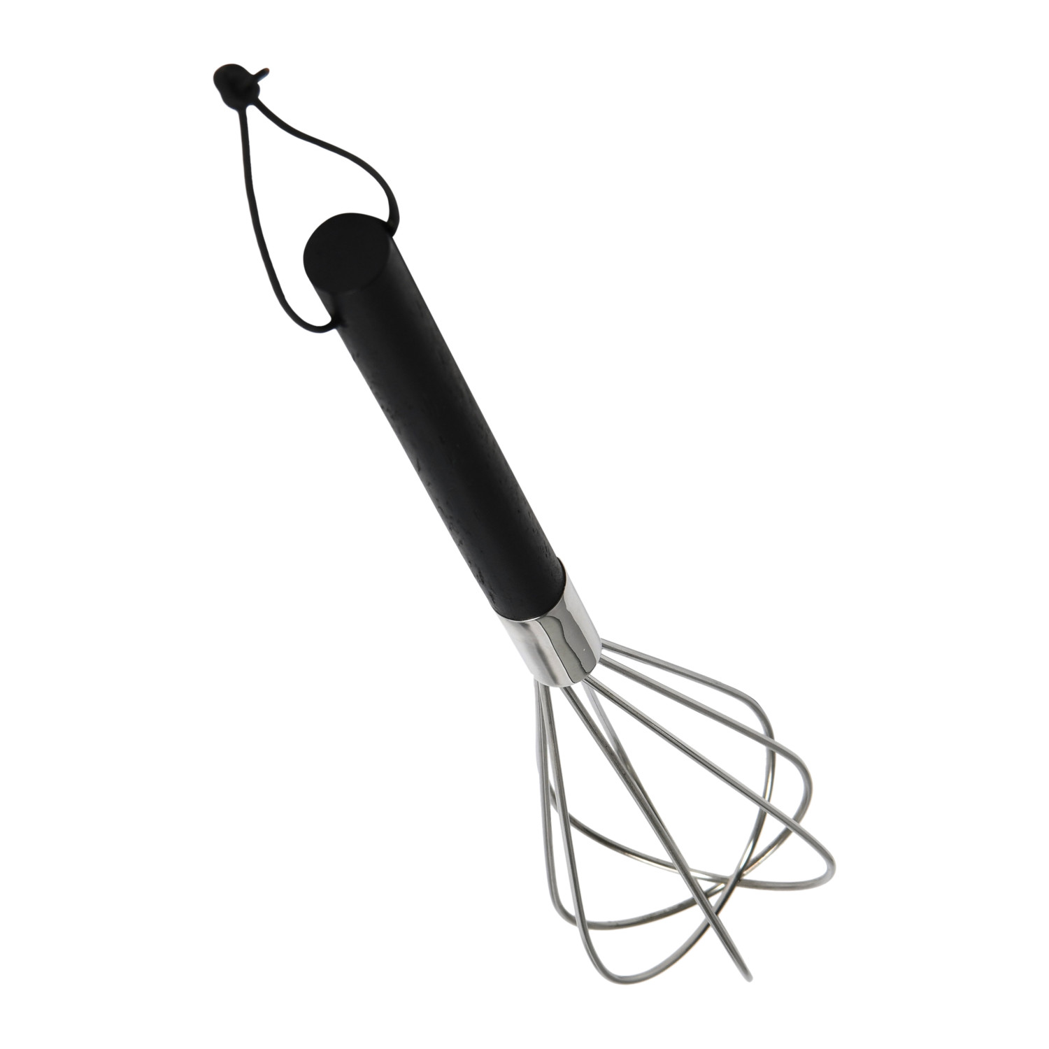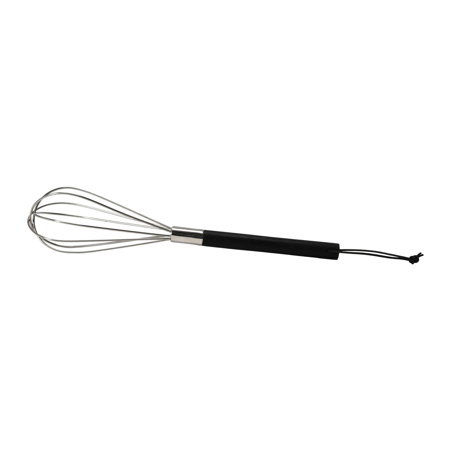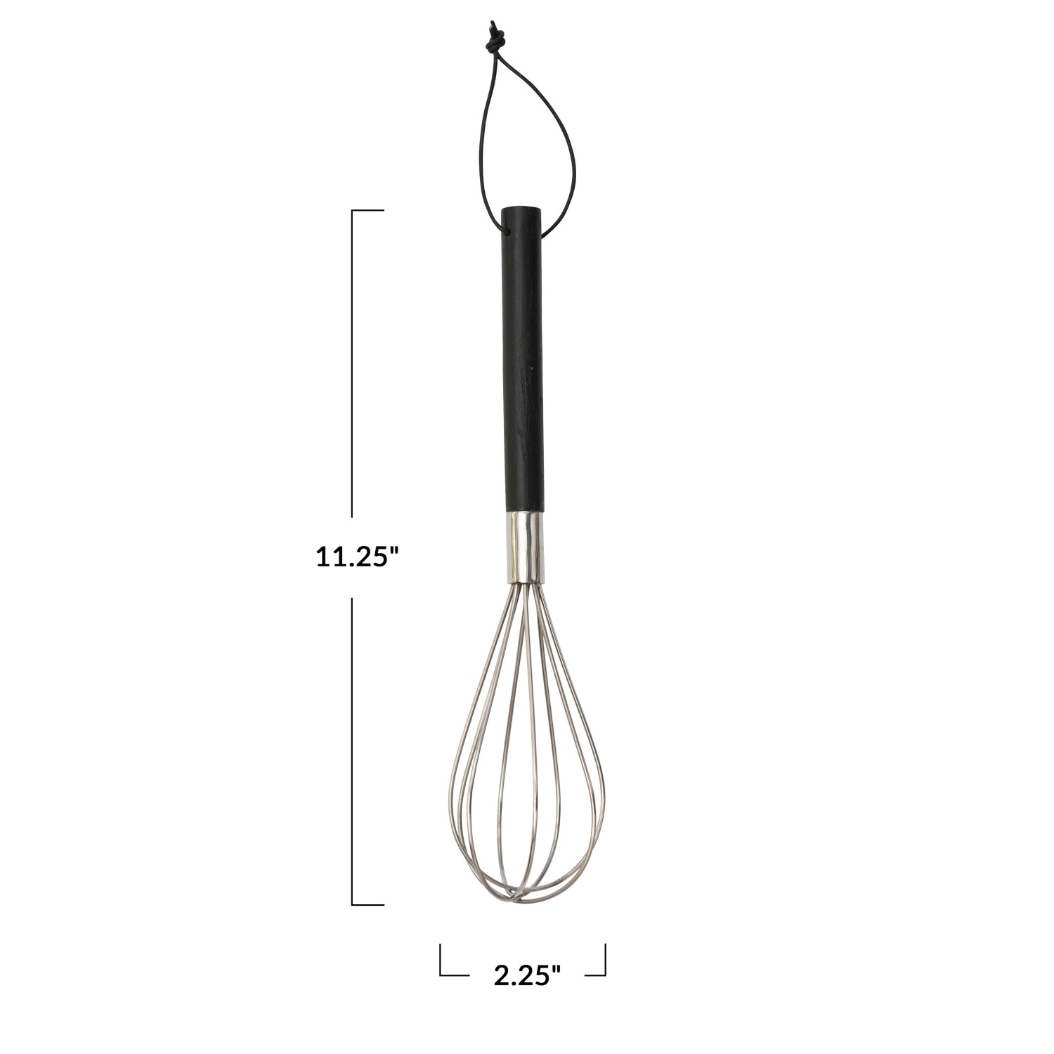 Catalog Name: 11-1/4"L x 2-1/4"W Stainless Steel Whisk w/ Mango Wood Handle & Leather Tie, Black