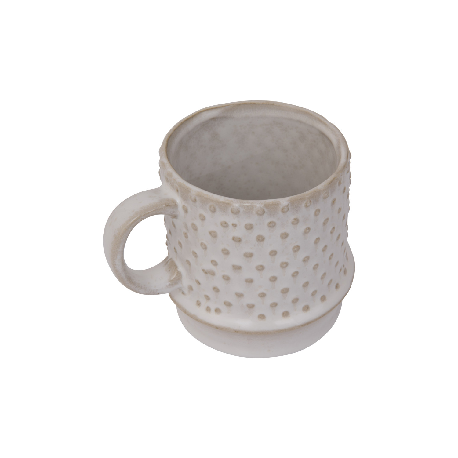 Catalog Name: 3" Round x 3-3/4"H 12 oz. Embossed Stoneware Hobnail Mug, Reactive Glaze, White (Each One Will Vary)