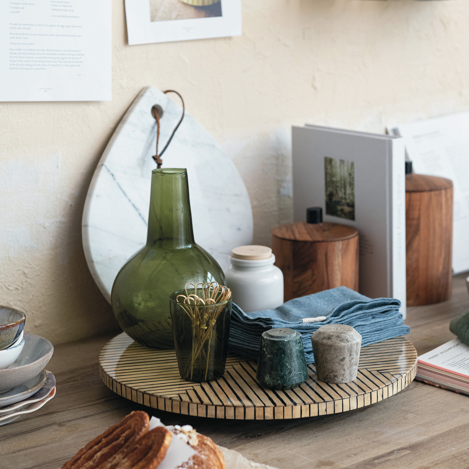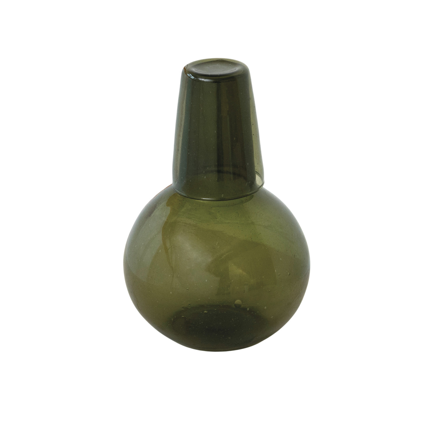 Catalog Name: 6" Round x 9"H 56 oz. Recycled Glass Carafe w/ 6 oz. Drinking Glass, Green, Set of 2