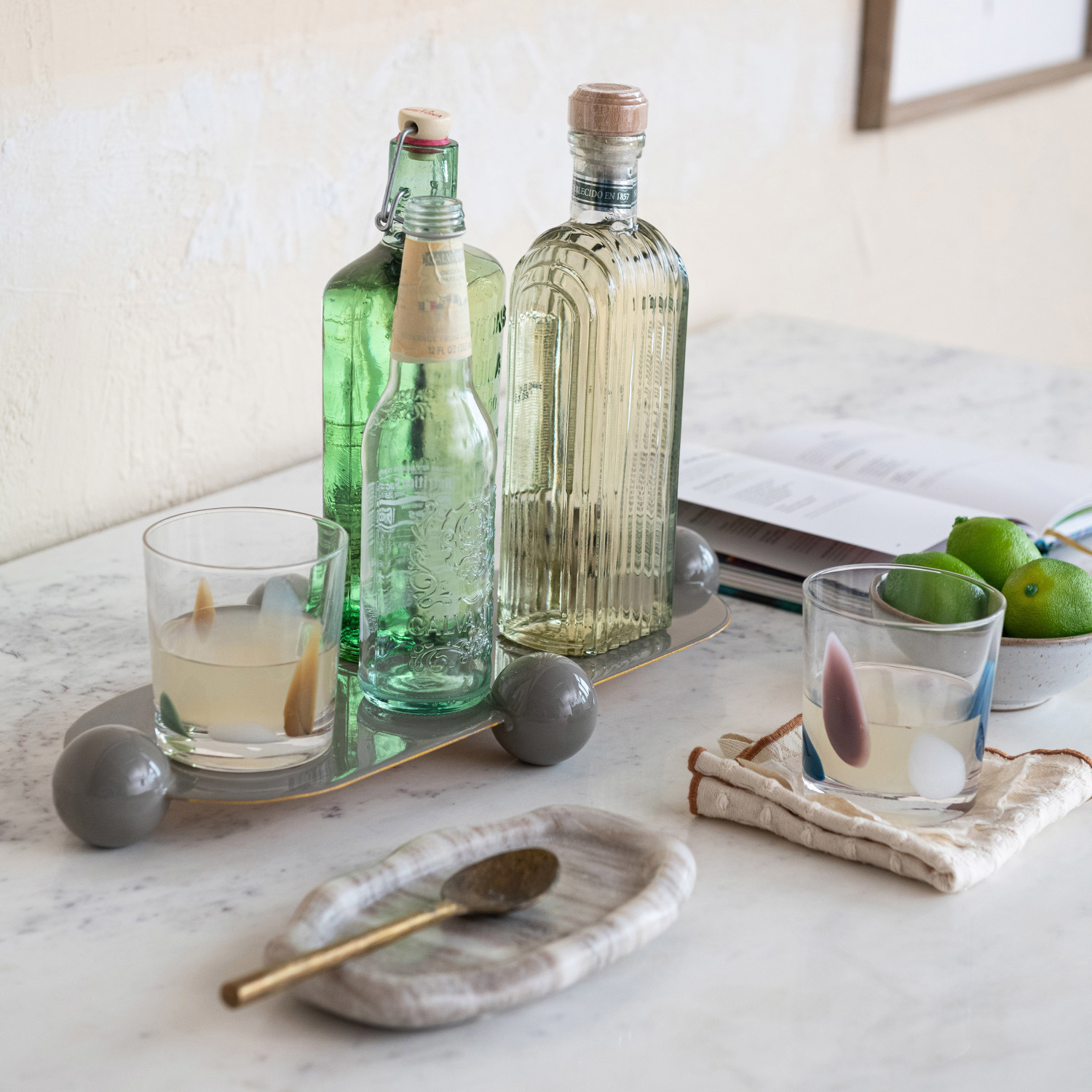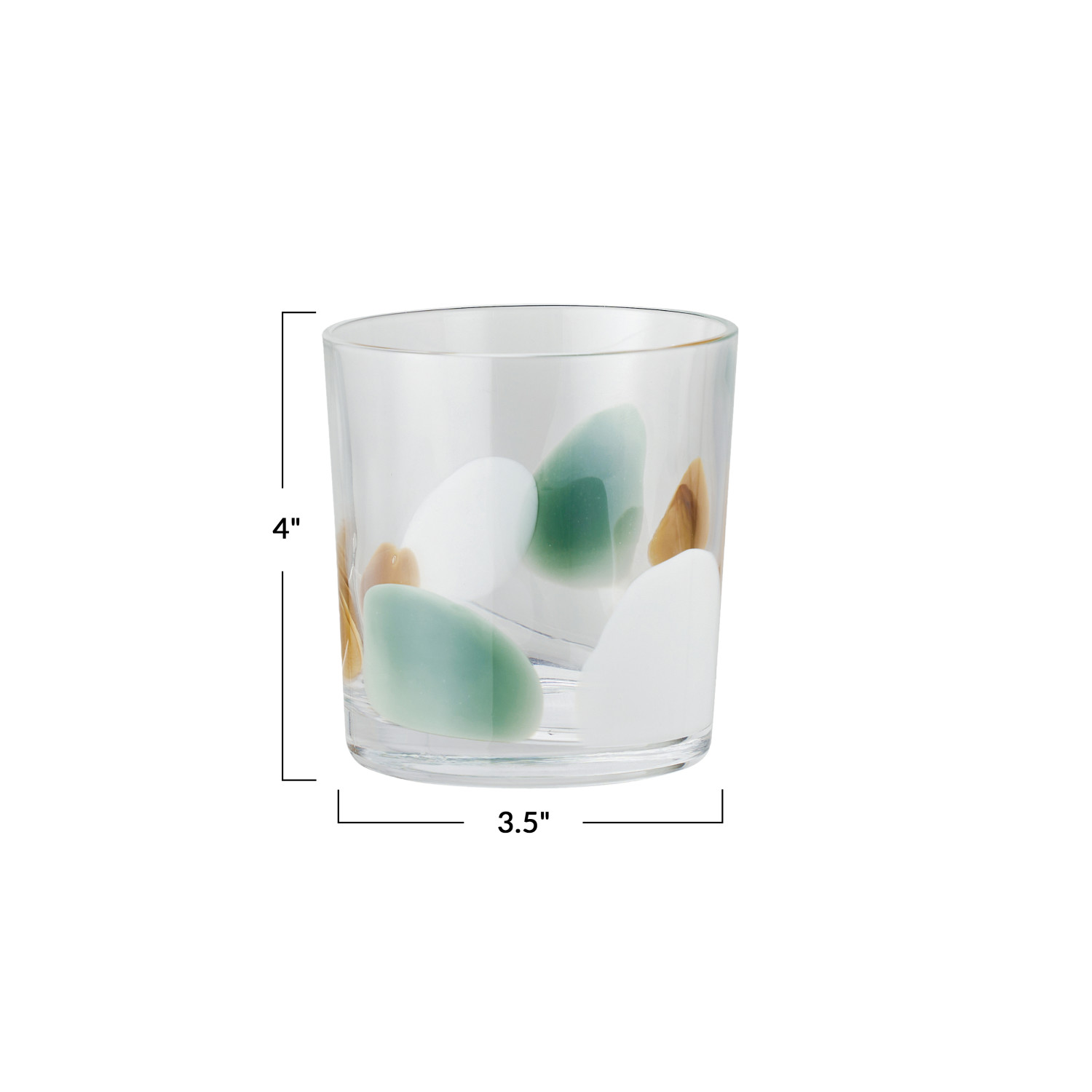 Catalog Name: 3-1/2" Round x 4"H 12 oz. Handmade Art Glass Drinking Glass, Multi Color Green