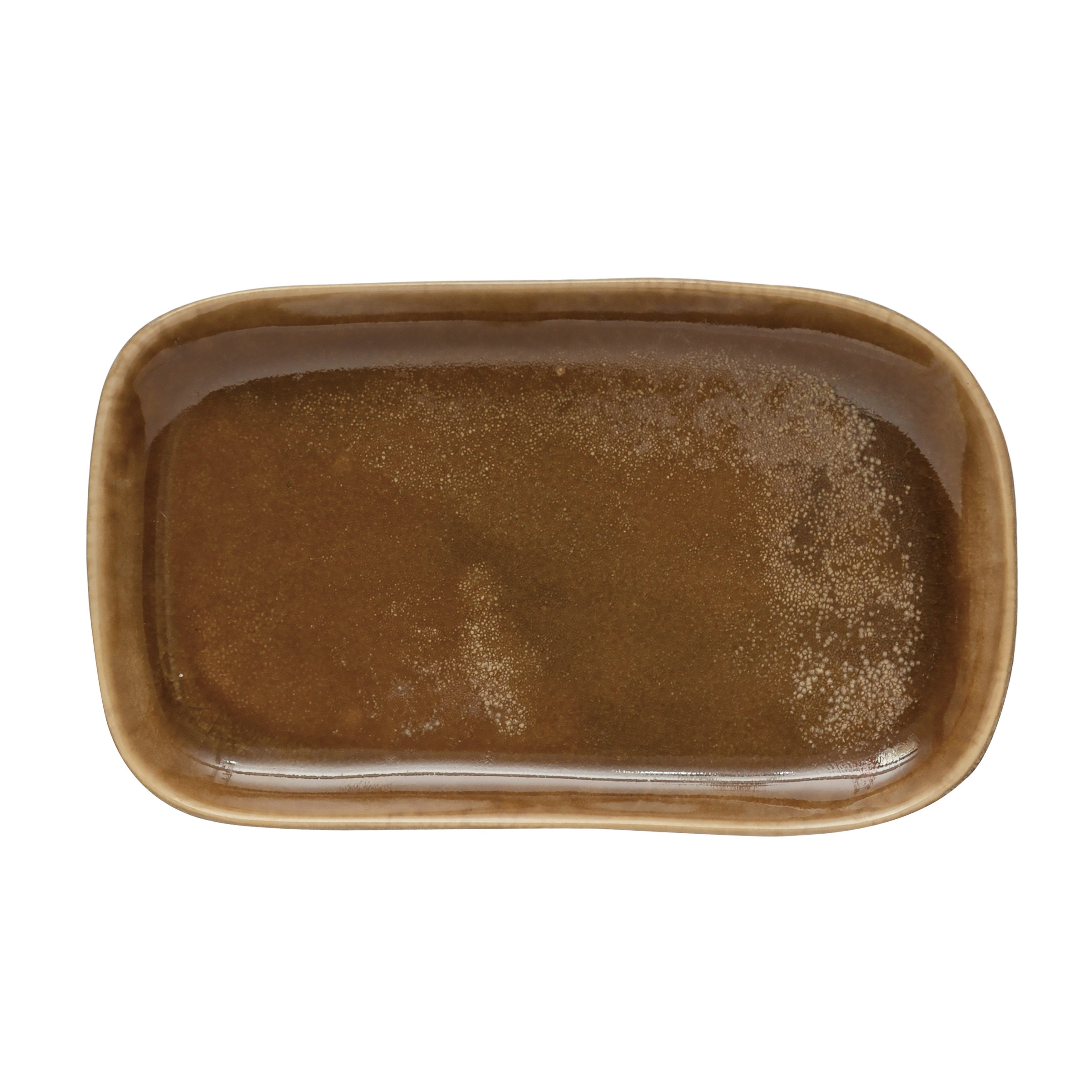 Catalog Name: 9-1/2"L x 5-3/4"W Stoneware Platter, Reactive Glaze, Brown (Each One Will Vary)