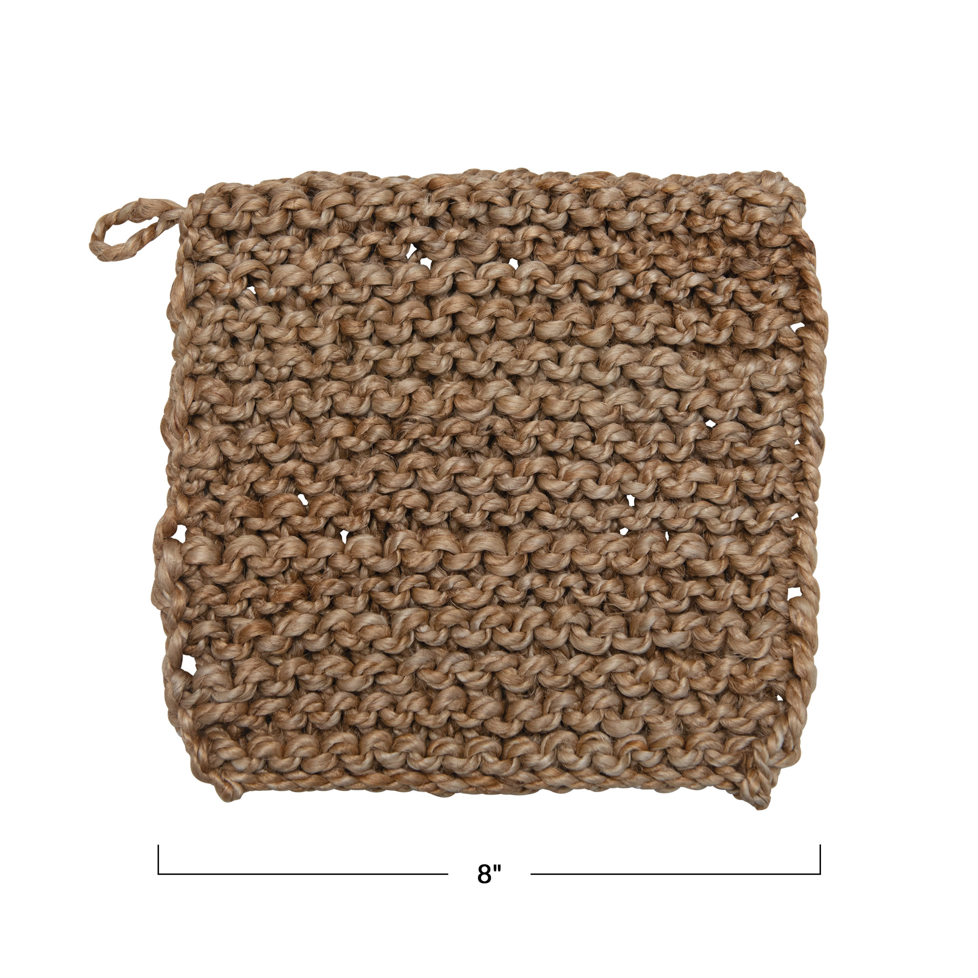Catalog Name: 8" Square Jute Crocheted Pot Holder, Natural