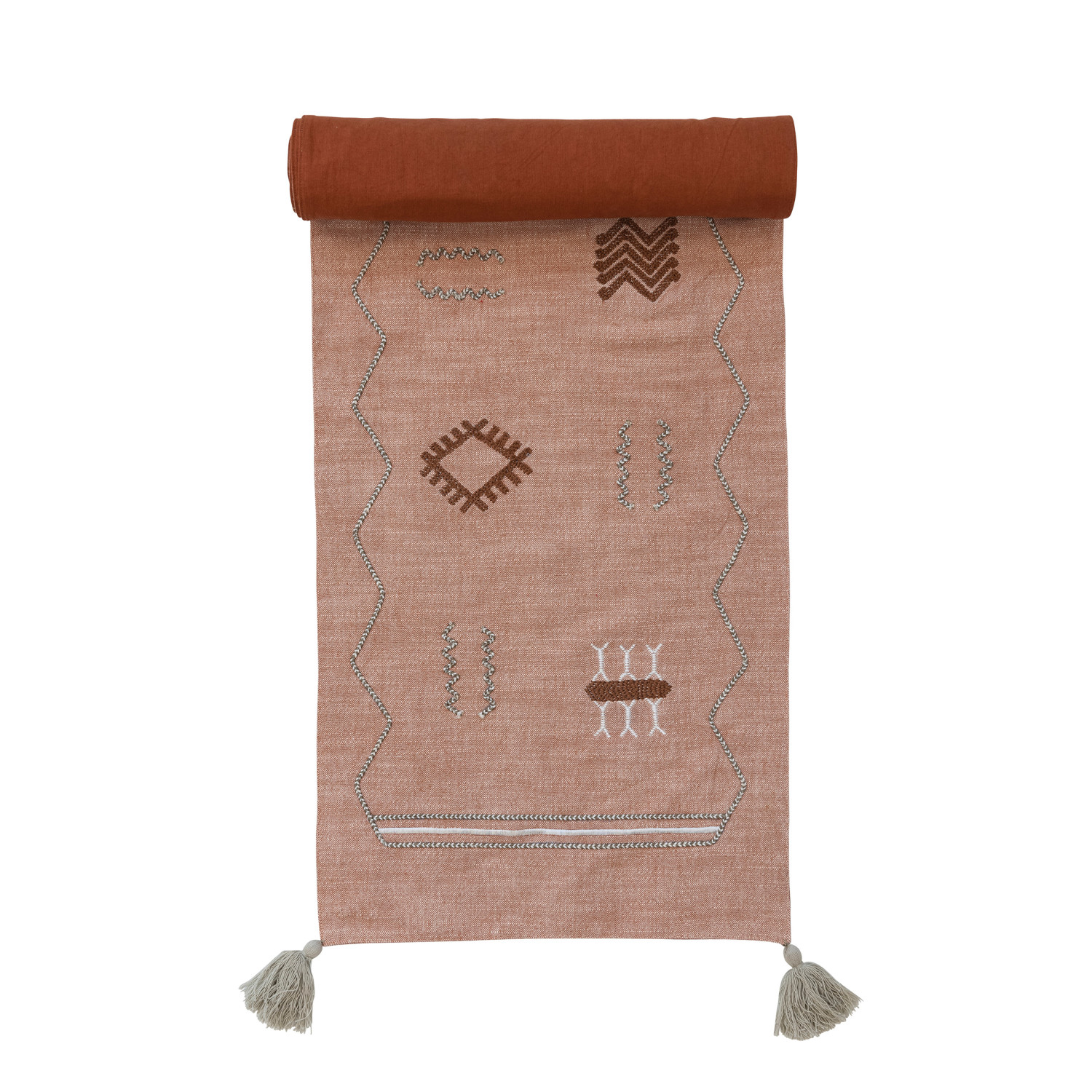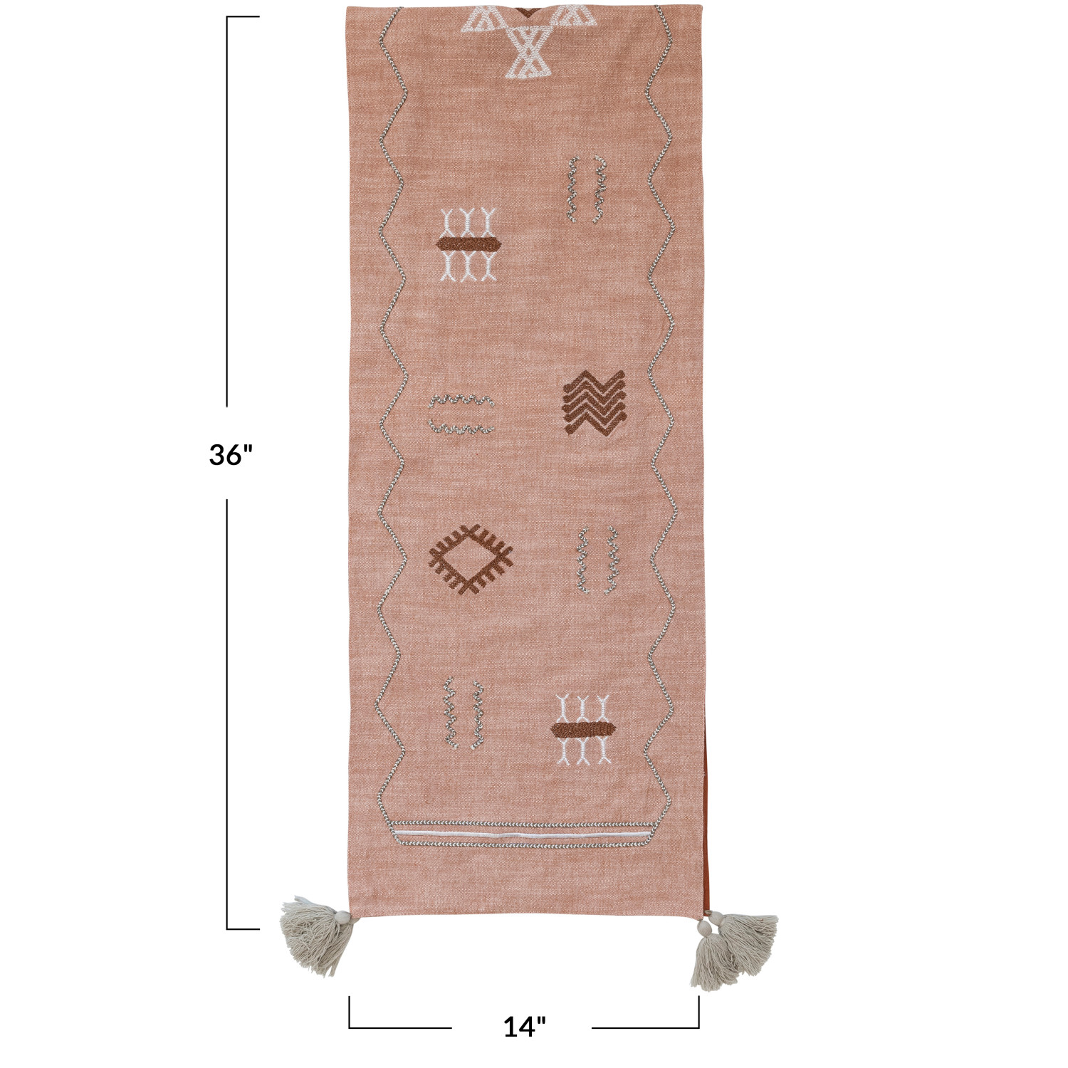 Cotton Table Runner w/ Embroidered Moroccan Design & Tassels, Multi Color