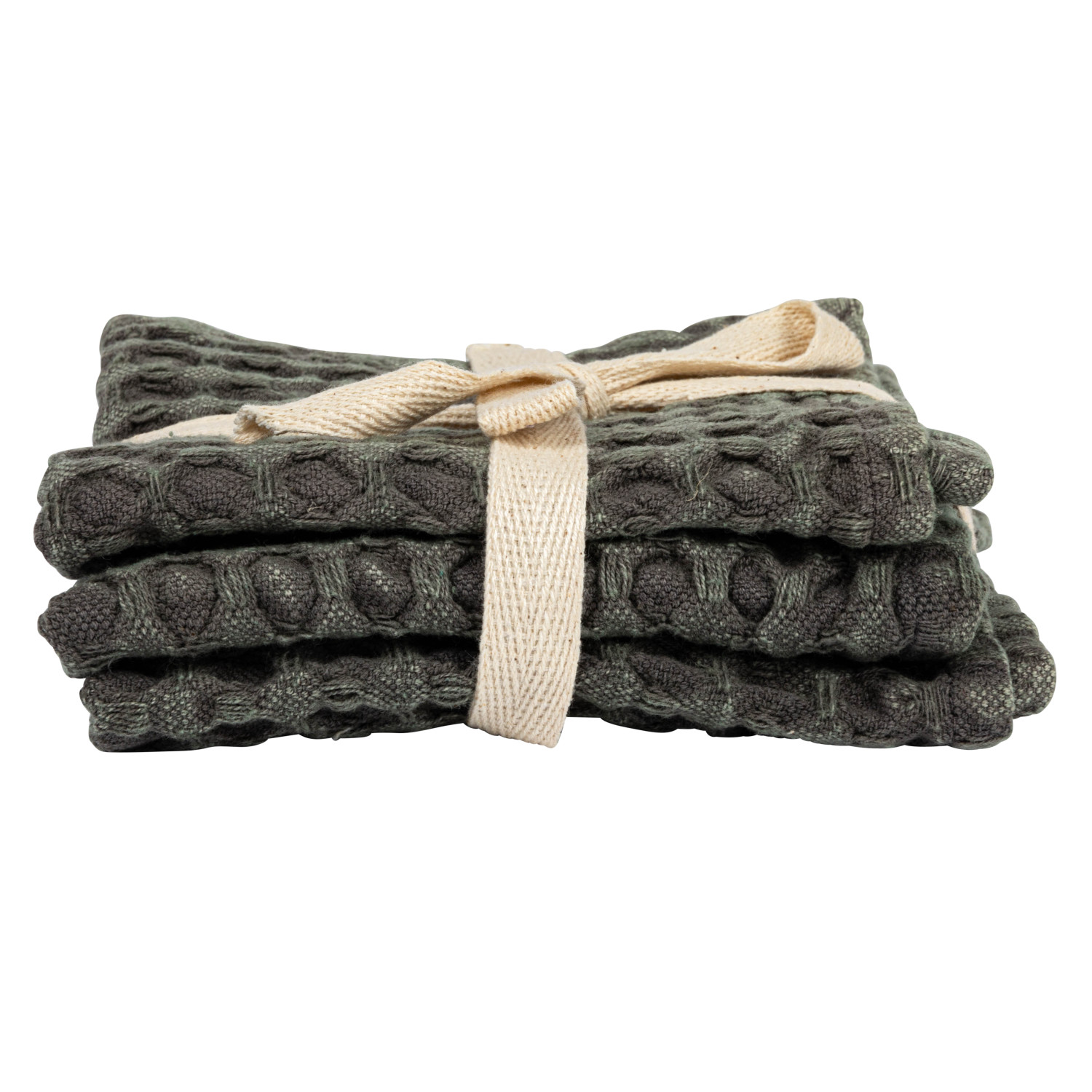 Featuring a vast selection of lush woven textures, intricate details, and timeless patterns, our collection of kitchen textiles will bring warmth and elegance to a dining space of any style. Instantly transform a breakfast nook or dining room into a sophisticated sanctuary by exploring a vast array of textiles and accessories fit for any space including table runners, napkin sets, placemats, napkin rings, tea towels, dish cloths, sponge cloths, pot holders, food pouches, aprons, and so much more. Choose from a wide variety of luxurious fabrics from cotton and velvet to linen and seagrass, and styles from mid-century modern and boho to classic farmhouse and contemporary. This classically designed set of dish cloths features stonewashed cotton with a stylish waffle weave design. Display in a living or dining space of any style from Scandinavian to farmhouse. Machine Wash Warm Gentle Cycle, Do Not Bleach, Tumble Dry Low, Warm Iron If Needed or Hand Wash. Made from cotton.