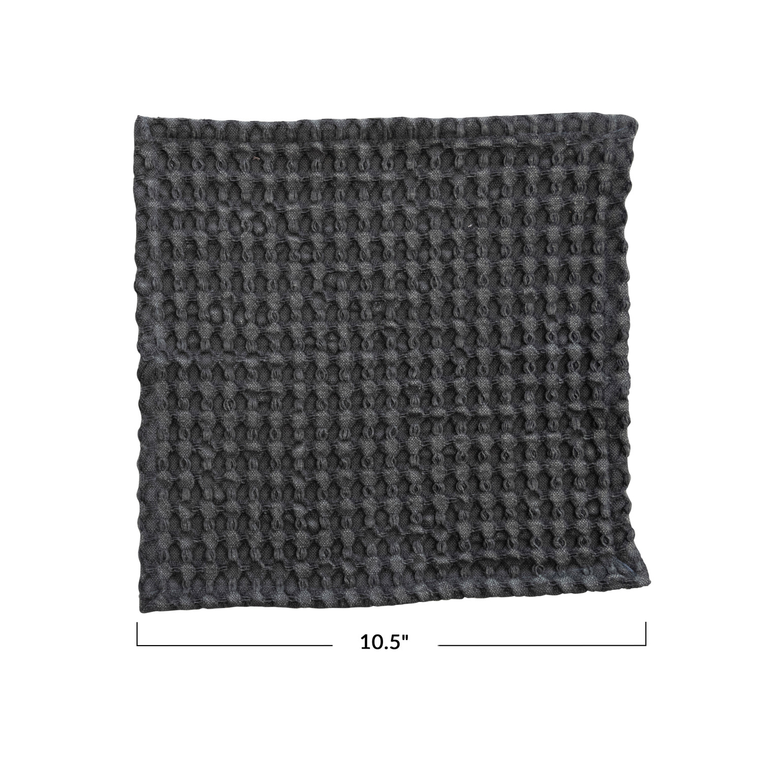 Catalog Name: 10-1/2" Square Stonewashed Cotton Waffle Weave Dish Cloths, Charcoal Color, Set of 3