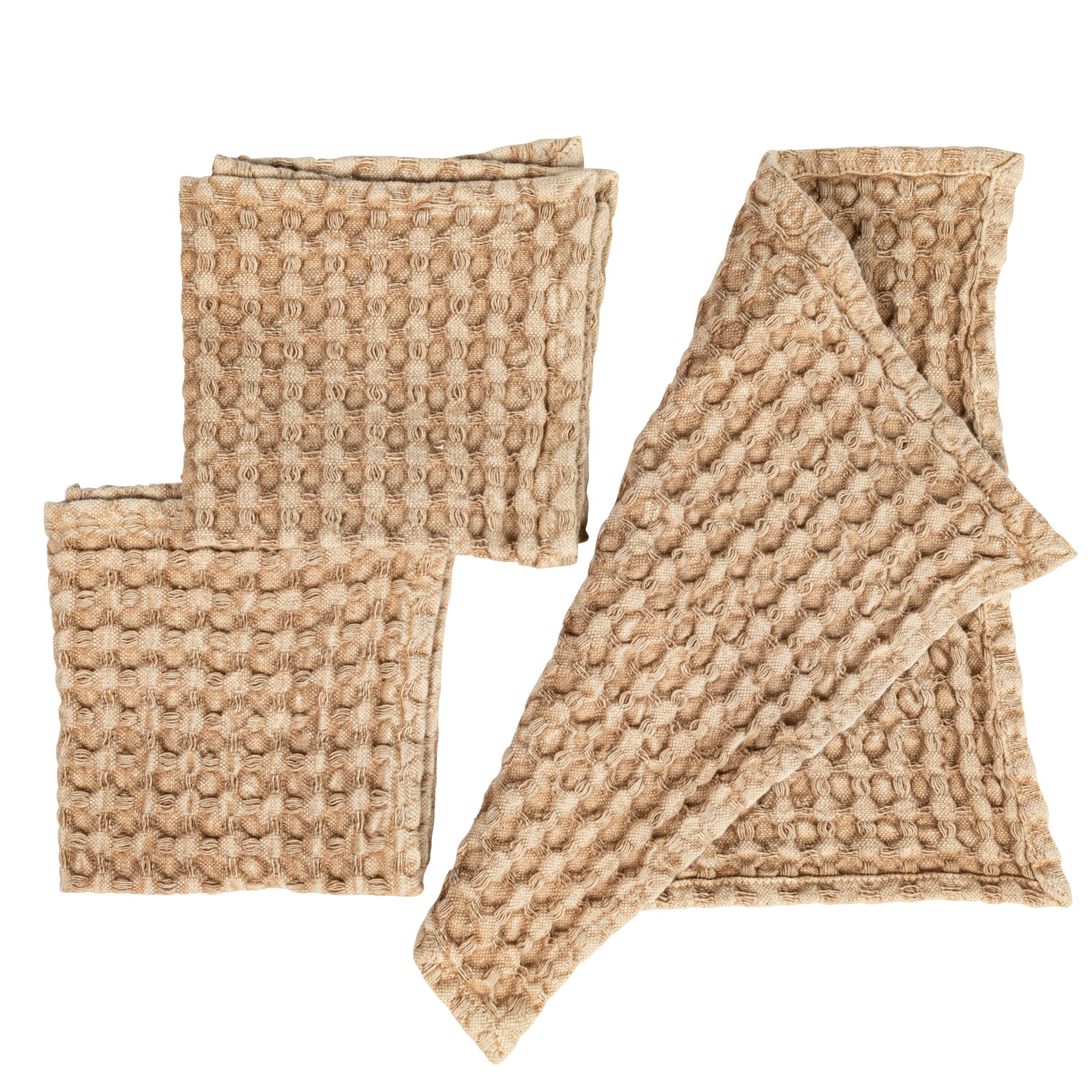 Catalog Name: 10-1/2" Square Stonewashed Cotton Waffle Weave Dish Cloths, Camel Color, Set of 3 Tied w/ Cotton Tape