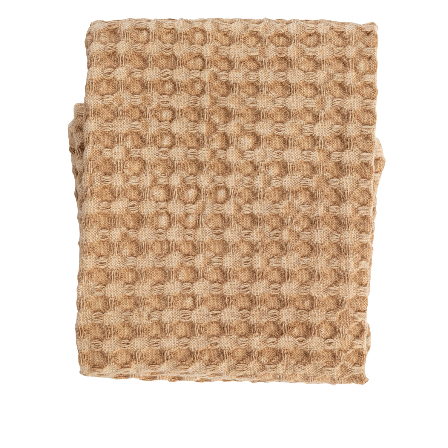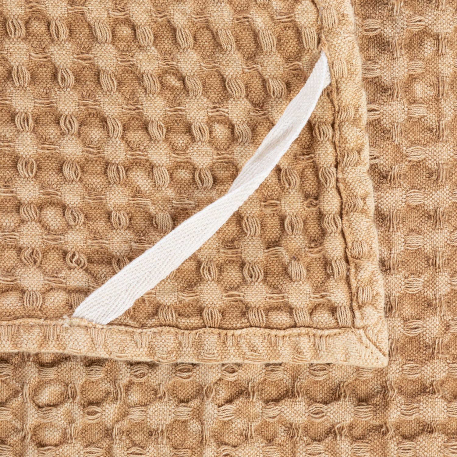 Stonewashed Cotton Waffle Weave Tea Towel, Camel Color