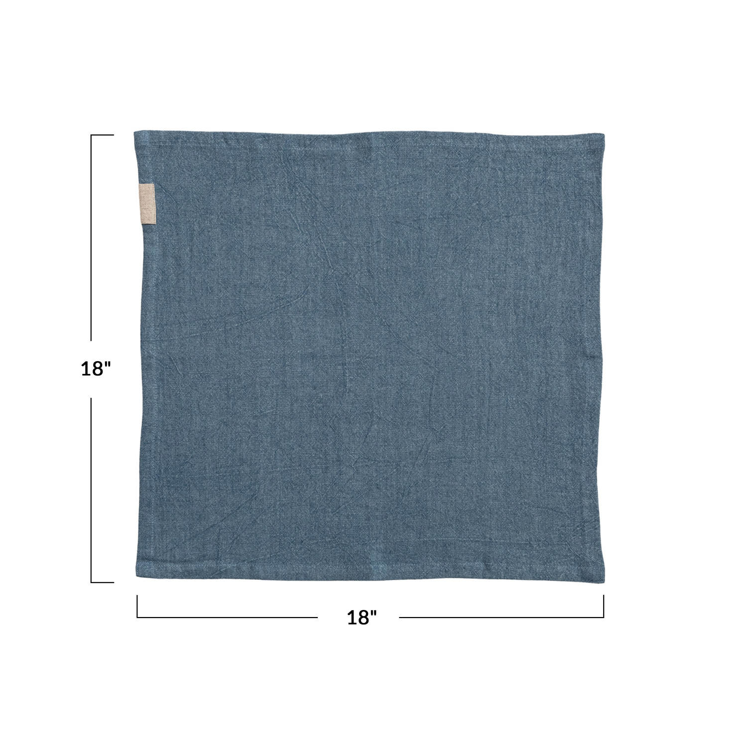 This set of 4 Square Stonewashed Linen blend napkins with in a serene blue hue will add a touch of elegance to any dining experience. These napkins feature a sophisticated stonewashed finish, making them perfect for both casual and formal dining settings. Ideal for enhancing table presentations, these napkins add a touch of refinement to meals. Made of a durable blend of viscose and linen that combines softness with resilience, each napkin measures 18 inches in length and 18 inches in width. Whether hosting a dinner party or enjoying a quiet meal at home, these napkins are sure to impress guests with their elegant design and quality craftsmanship.