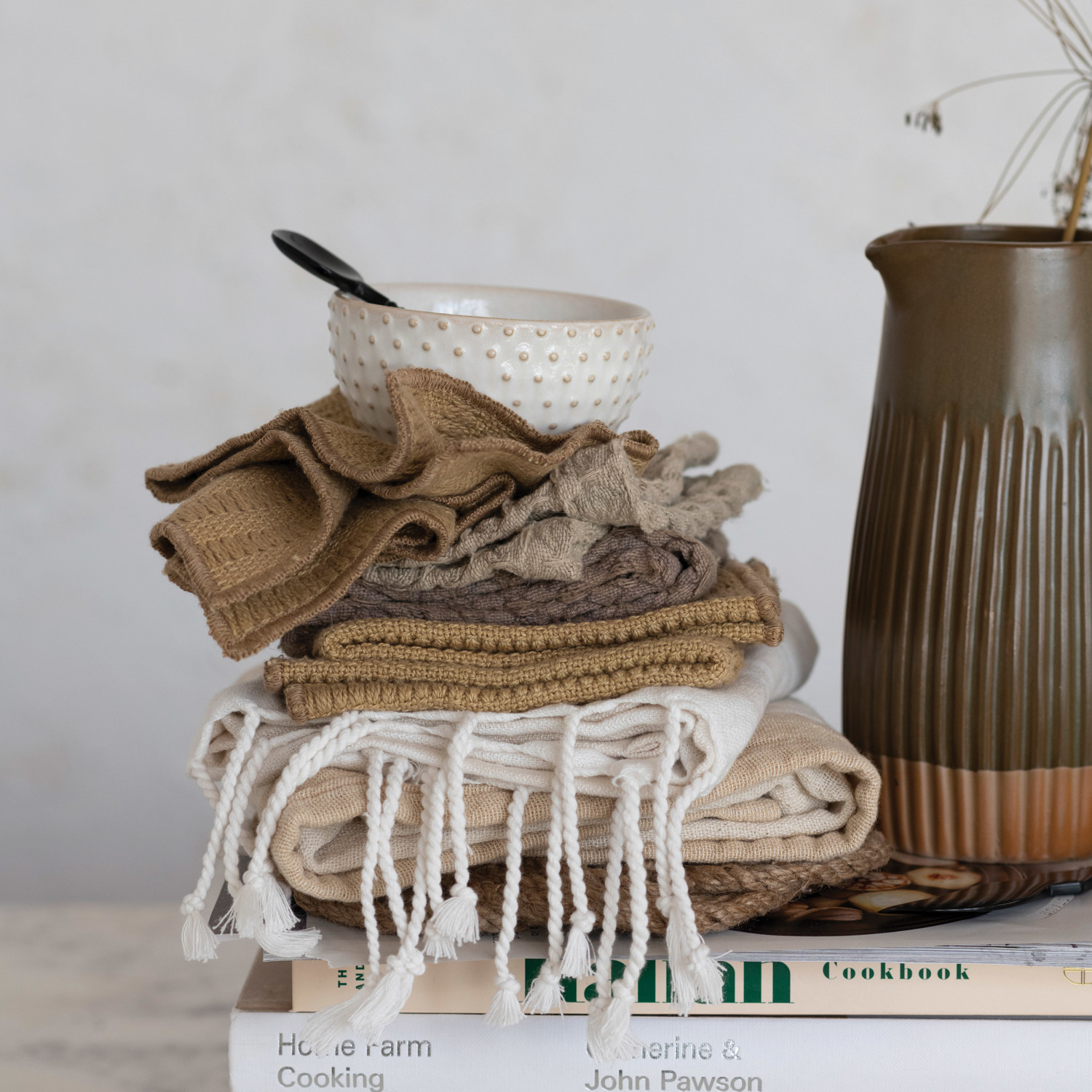30 oz. Stoneware Ribbed Pitcher, Reactive Glaze