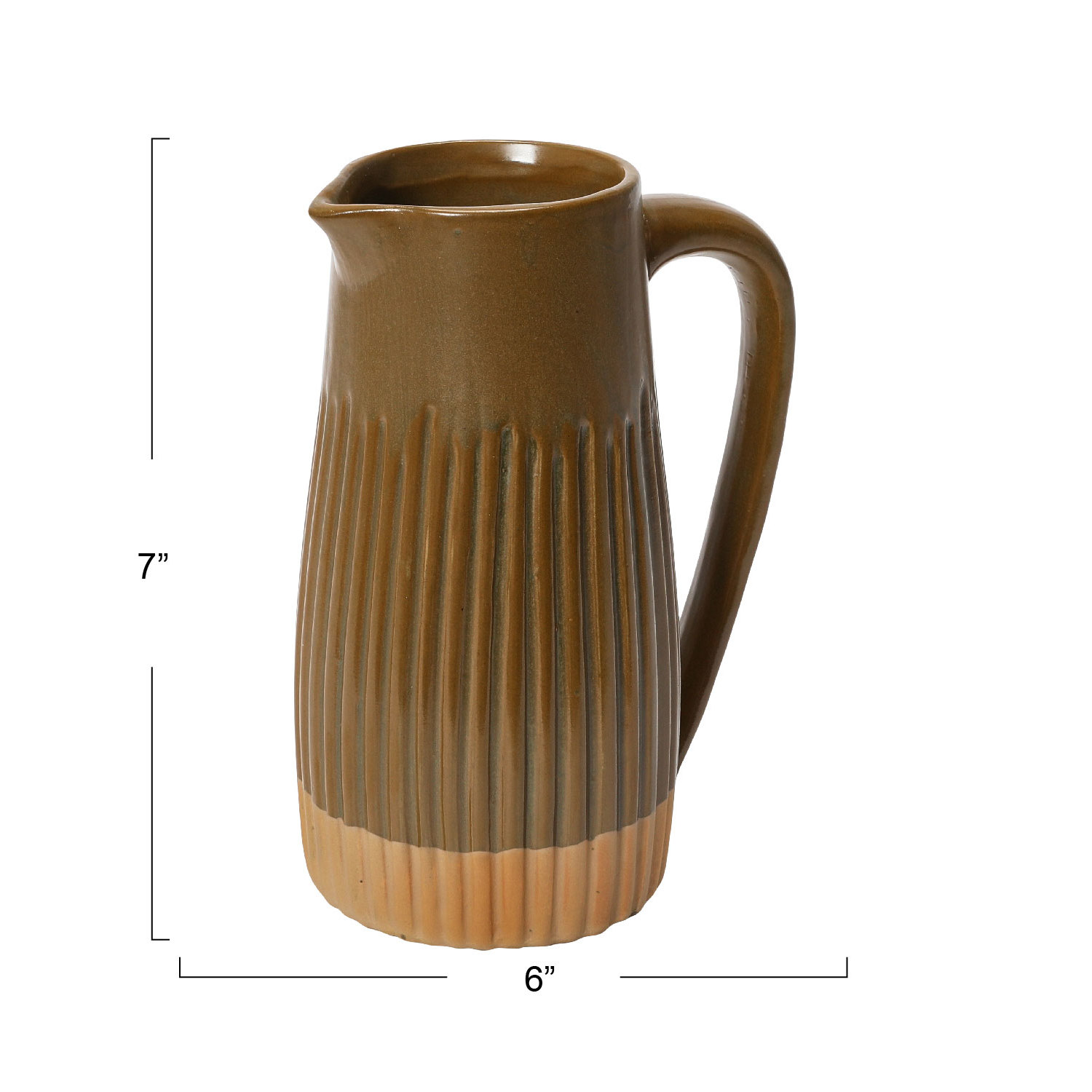Catalog Name: 5"L x 3-3/4"W x 7-1/4"H 30 oz. Stoneware Fluted Pitcher, Reactive Glaze, Matte Brown (Each One Will Vary)