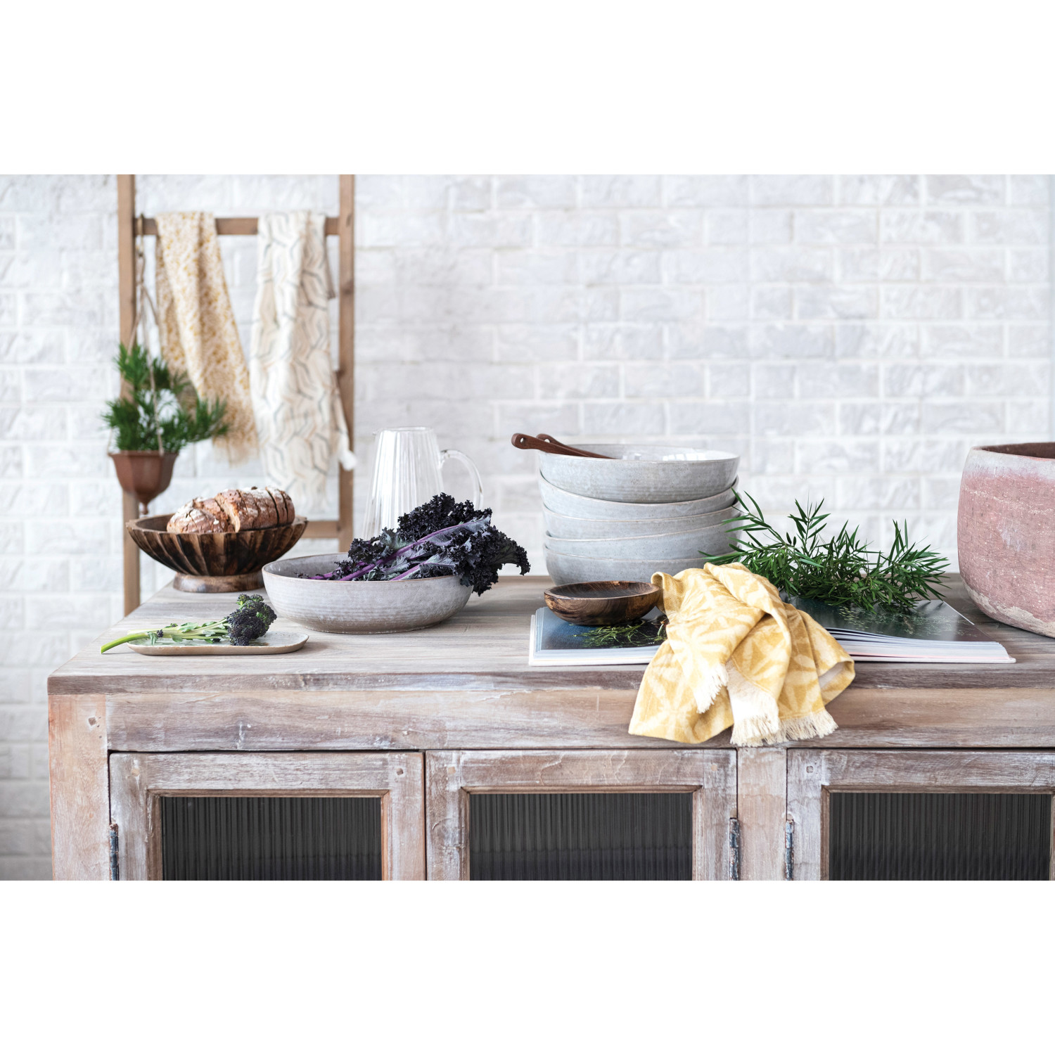 These collections of serving pieces are a must-have for every kitchen for those who love to cook and serve delicious food. They can find the ideal dishes for every table in classic white, vibrant colors, or modern patterns. The serving pieces come in various shapes, sizes, and materials, such as ceramic, stoneware, porcelain, or glass. They can create their unique style by mixing and matching them or choose a matching set for a coordinated look. These serveware are not only picture-worthy, but also durable, microwave-safe, and dishwasher-safe. These collections of serving pieces will make every meal more fun and memorable, whether they are hosting a dinner party, a family gathering, or a casual brunch. This exquisite piece made of mango wood features a scalloped edge and burnt finish, adding a touch of elegance and refinement to its organic appeal. Effortlessly complements farmhouse, bohemian, and eclectic, its earthy tones and artisanal craftsmanship make it a perfect addition to natural-inspired interiors. Its generous size is ideal for displaying fresh fruits, serving salads, or showcasing decorative accents like potpourri or dried flowers. Made of mango wood.