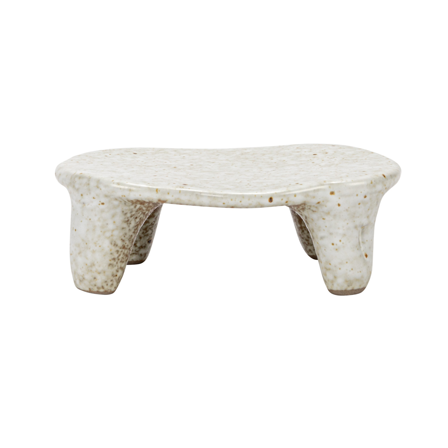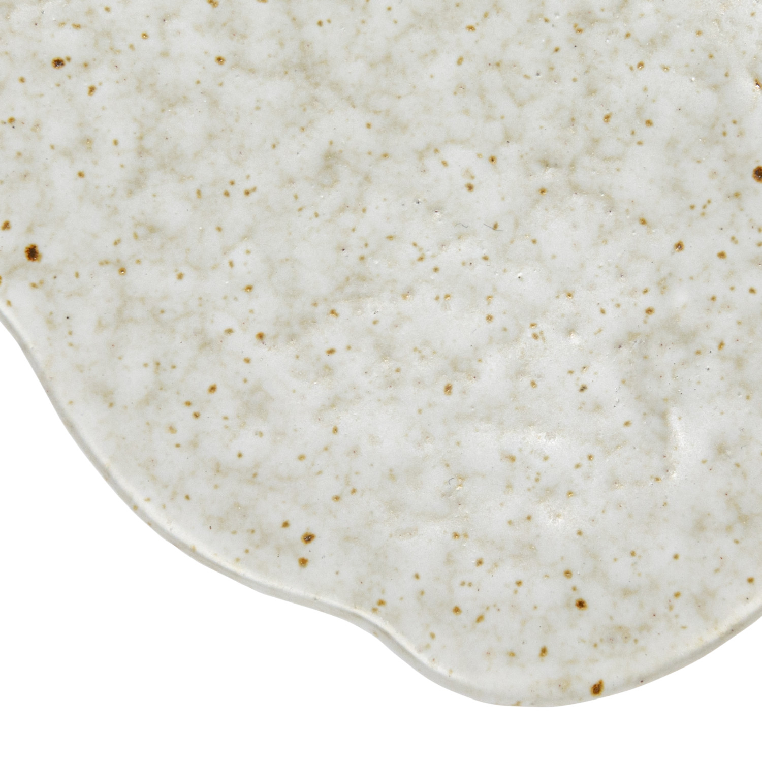 These collections of serving pieces are a must-have for every kitchen for those who love to cook and serve delicious food. They can find the ideal dishes for every table in classic white, vibrant colors, or modern patterns. The serving pieces come in various shapes, sizes, and materials, such as ceramic, stoneware, porcelain, or glass. They can create their unique style by mixing and matching them or choose a matching set for a coordinated look. These serveware are not only picture-worthy, but also durable, microwave-safe, and dishwasher-safe. These collections of serving pieces will make every meal more fun and memorable, whether they are hosting a dinner party, a family gathering, or a casual brunch. The Stoneware Footed Dish Coaster features a captivating reactive glaze in a lovely cream color, individually crafted with a unique reactive glaze, resulting in subtle variations that make it a truly one-of-a-kind piece. The cream color and speckled details exude an organic and rustic charm, perfect for complementing various home decor styles, including a farmhouse, bohemian, and eclectic. This coaster, which is suitable for use with various drinkware or small bowls, provides a stylish and functional solution for any tabletop or coffee table. Made of stoneware.
