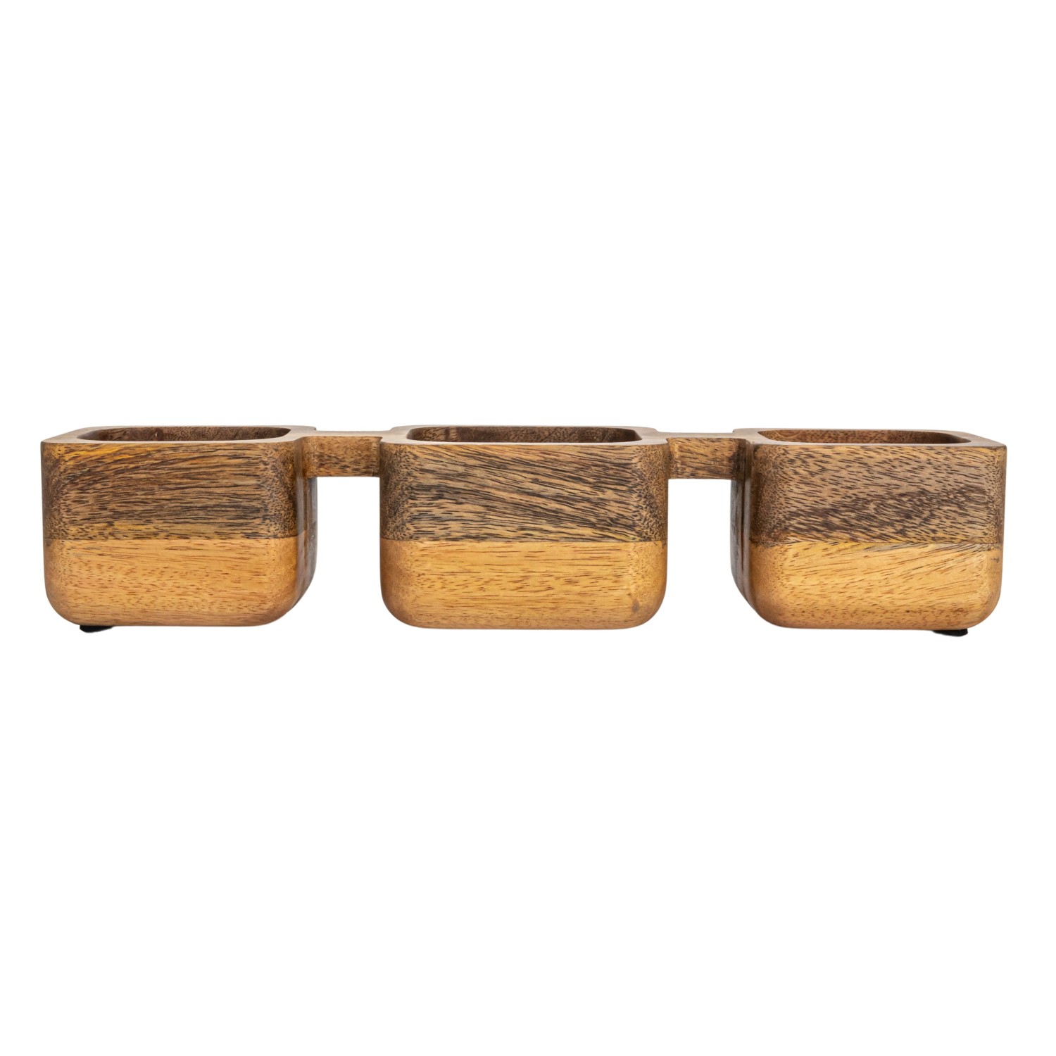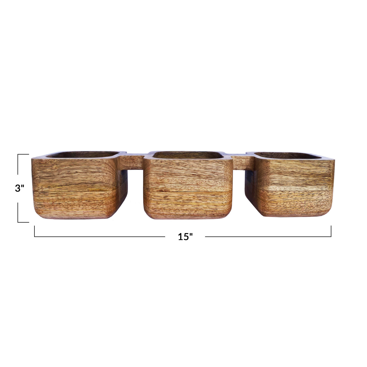 Catalog Name: 15"L x 4-1/2"W x 3"H Mango Wood Dish w/ 3 Sections, Natural