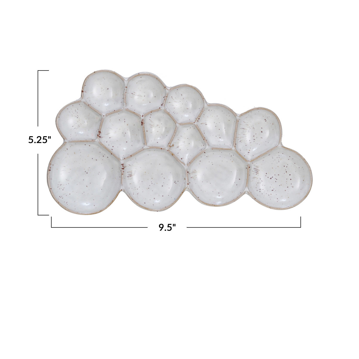 Catalog Name: 9-1/2"L x 5-1/4"W Stoneware Organic Shaped Dish w/ 13 Sections, Reactive Glaze, White Speckled (Each One Will Vary)