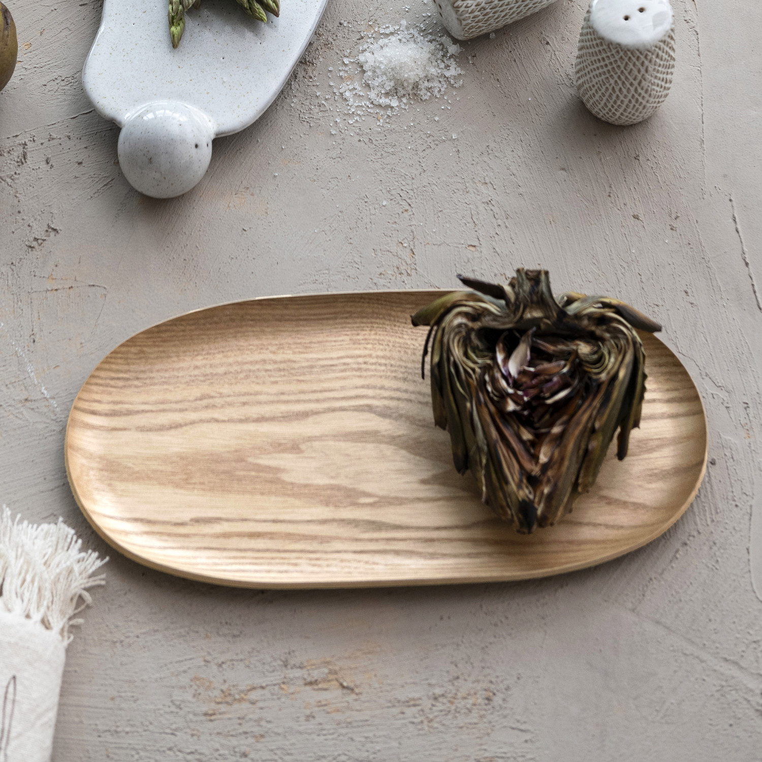 Catalog Name: 12-1/4"L x 6"W Oval Oak Wood Serving Tray, Natural