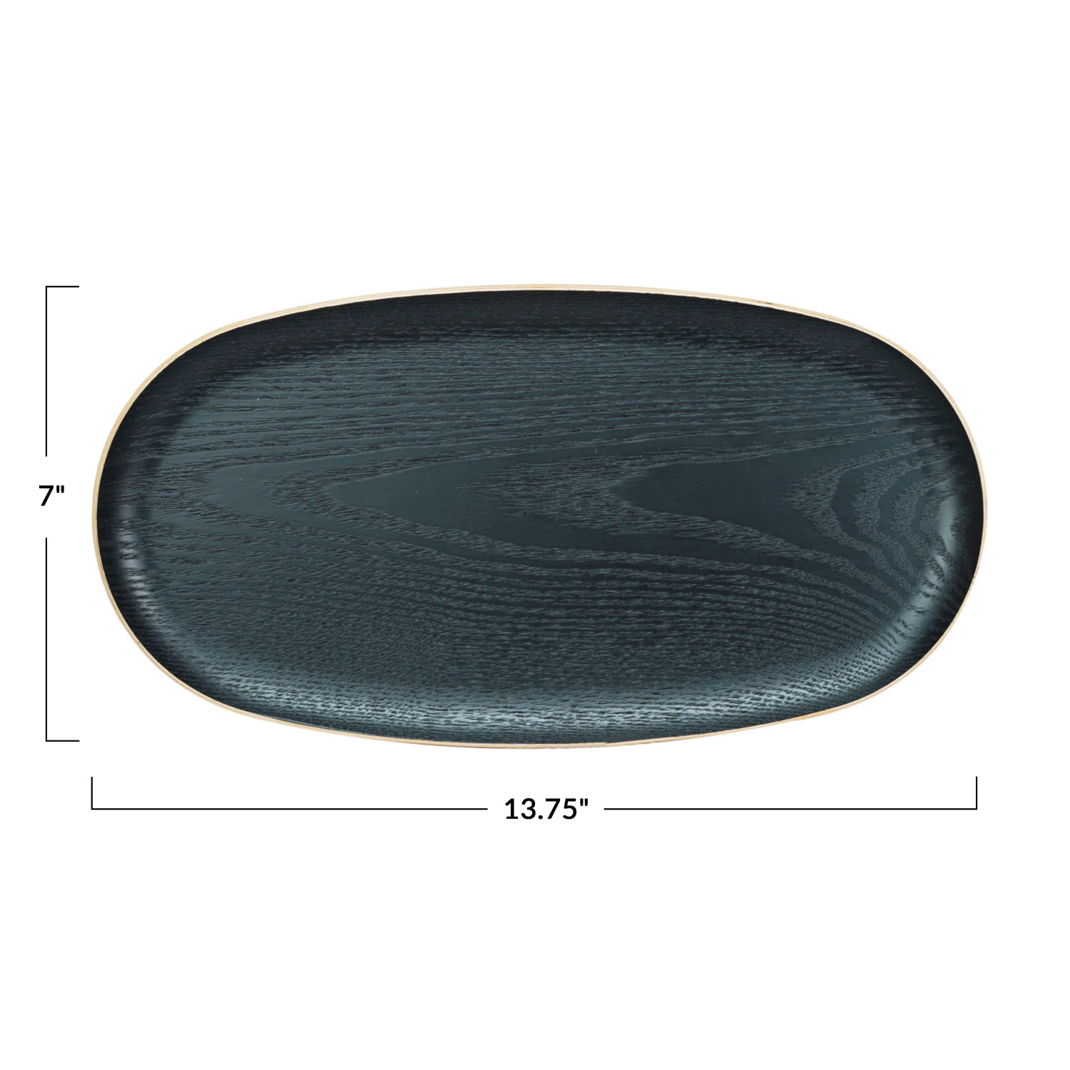 Catalog Name: 13-3/4"L x 7"W Oval Oak Wood Serving Tray, Black & Natural