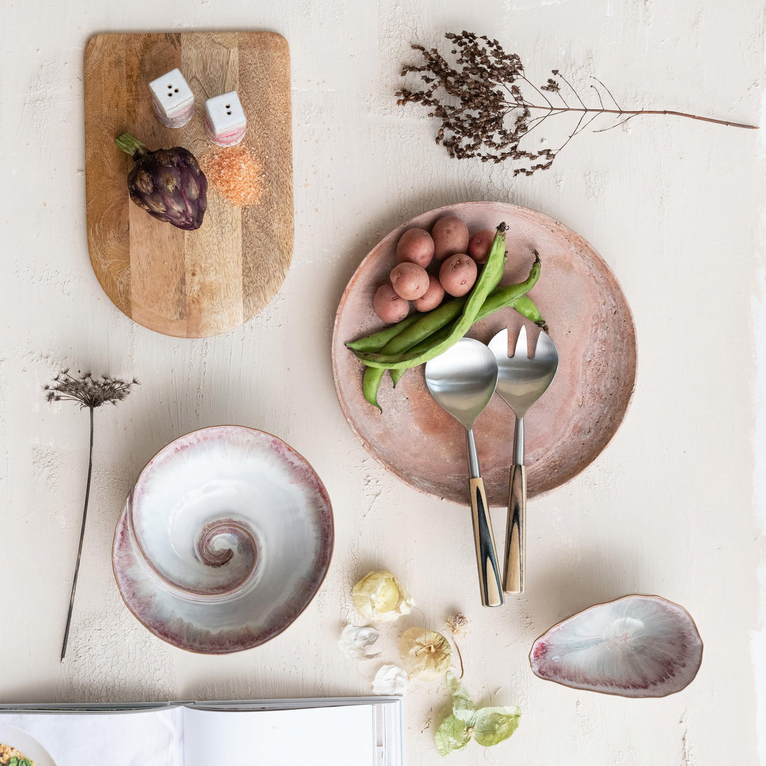 This Berry Stoneware Footed Bowl exudes a delicate charm, with its organic form and soothing color palette of white and berry achieved through a reactive glaze. Each bowl is unique, with subtle variations in the finish that add to its allure. The dimensions of 6.50 inches in length, 4.00 inches in width, and 2.75 inches in height make it an ideal choice for presenting small dishes or enhancing the home with its understated beauty. Whether used for dining or as a part of every interior design, this bowl's food-safe quality and enchanting appearance make it a versatile and treasured addition to any collection.