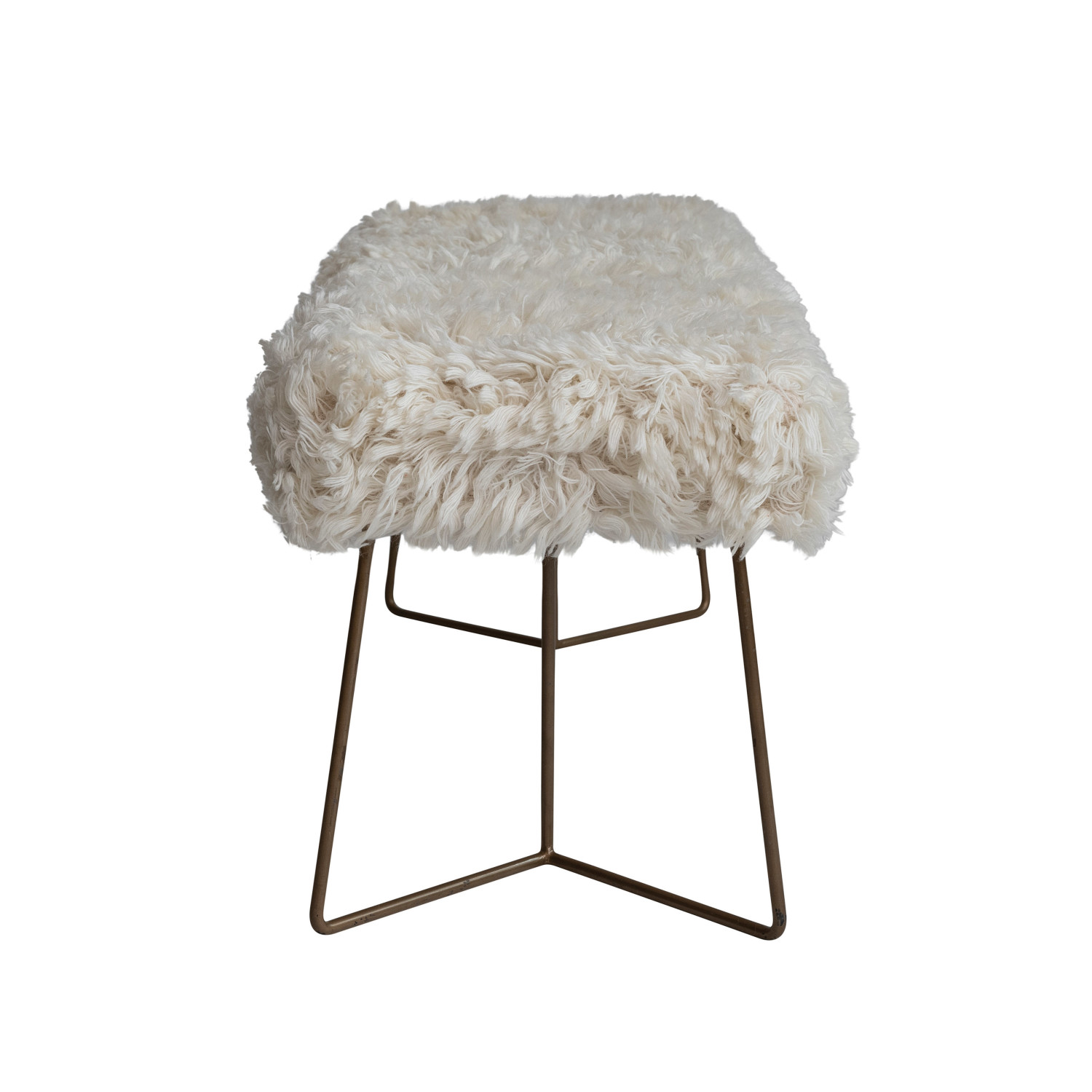 New Zealand Wool Shag Bench w/ Antique Gold Finish Metal Legs, Natural