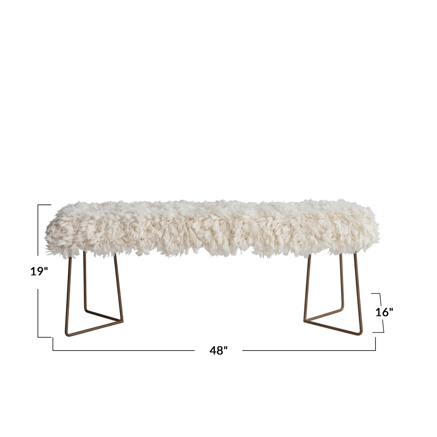 Catalog Name: 48"W x 16"D x 19"H New Zealand Wool Shag Bench w/ Antique Gold Finish Metal Legs, Natural, Truck Ship