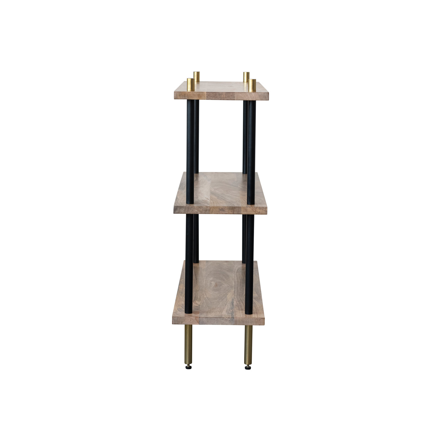 Catalog Name: 35-1/2"W x 11-3/4"D x 37"H Mango Wood & Metal 3-Tier Shelf w/ Brass Finish Legs, Natural & Black, KD