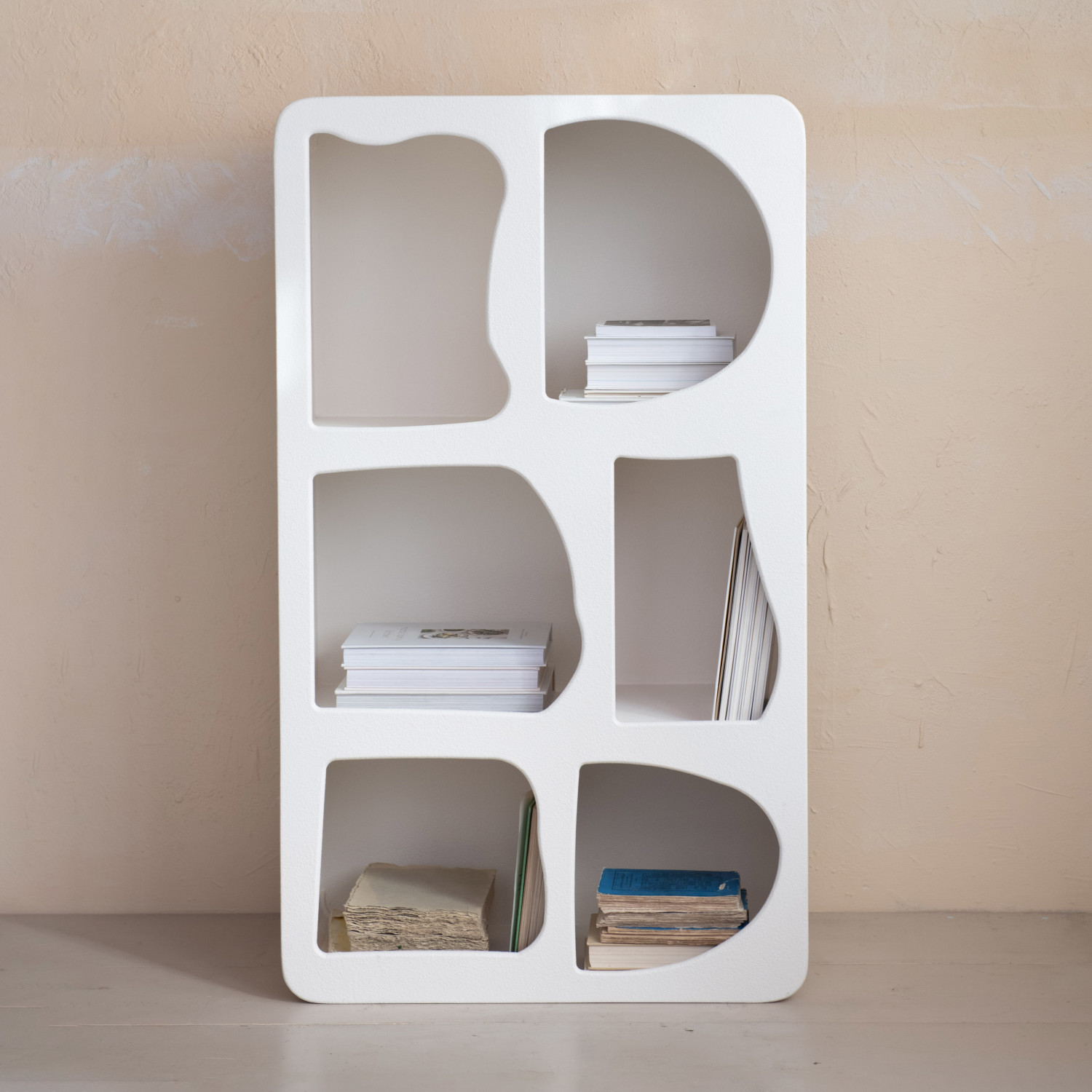 Catalog Name: 46-3/4"W x 15"D x 27-1/2"H Textured MDF Shelf w/ 6 Compartments, White, Truck Ship (Sits Vertically & Horizontally)