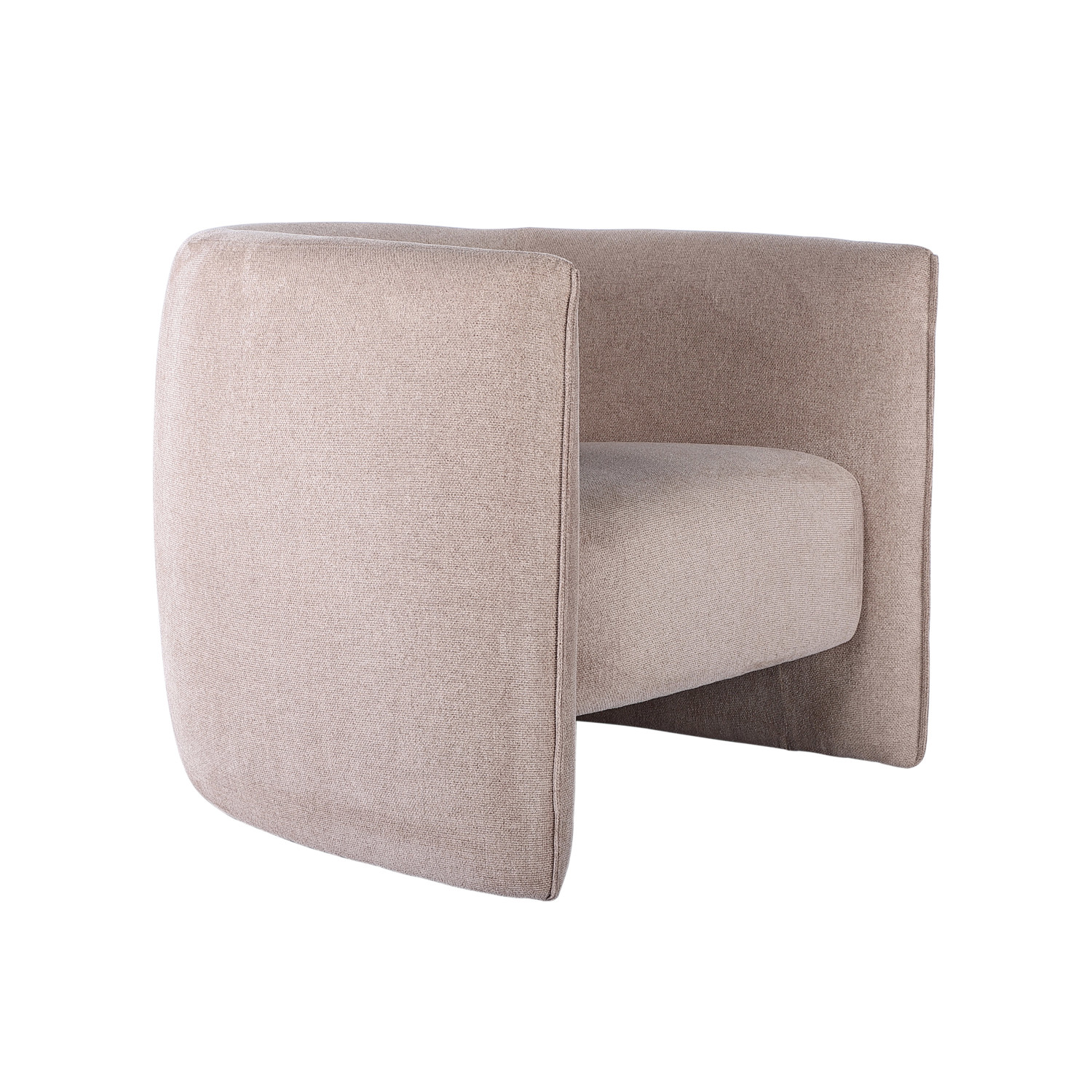 Catalog Name: 34-1/4"W x 23-3/4"D x 29"H Fabric Upholstered Curved Chair, Tan Color, Truck Ship