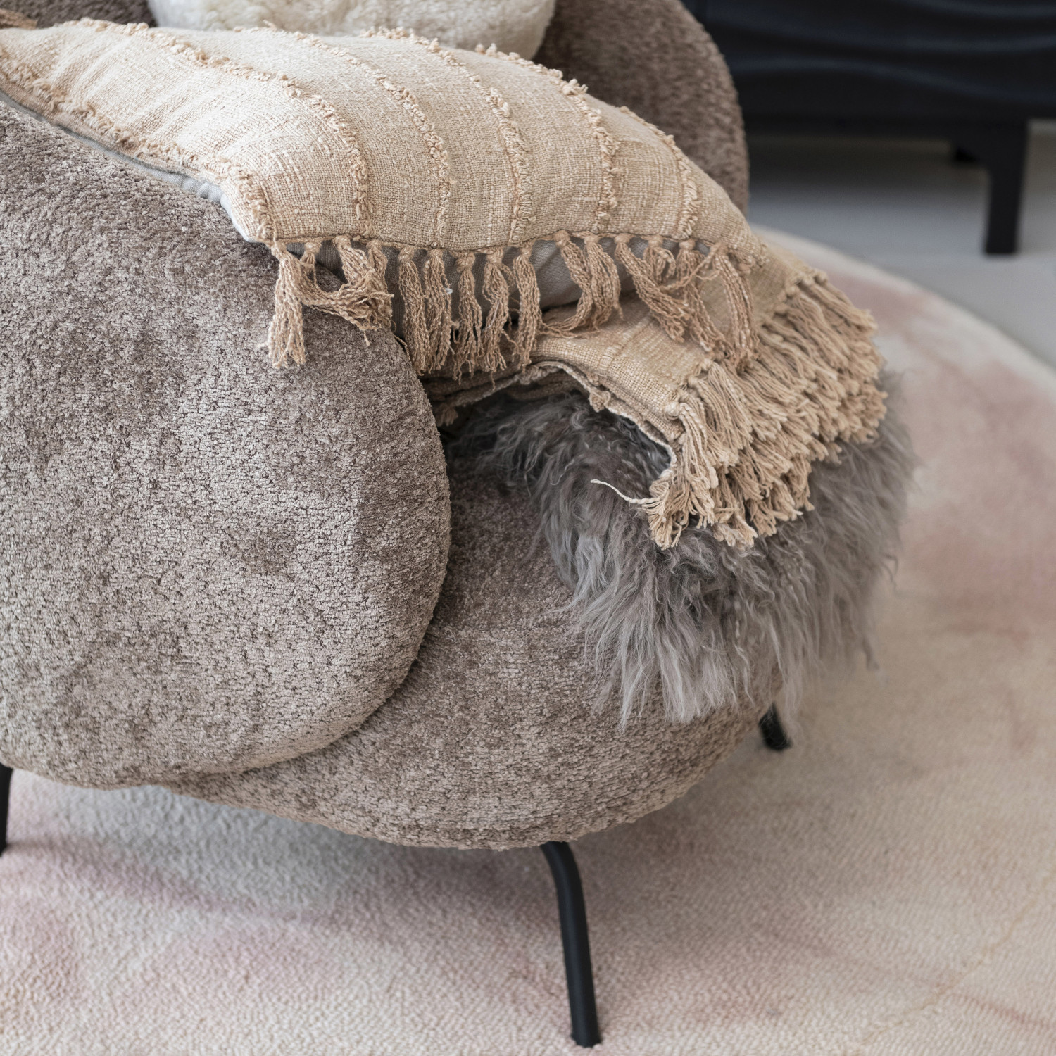 Catalog Name: 29-3/4"W x 28"D x 30-3/4"H Bouclé Fabric Upholstered Chair w/ Black Metal Legs, Taupe, Truck Ship