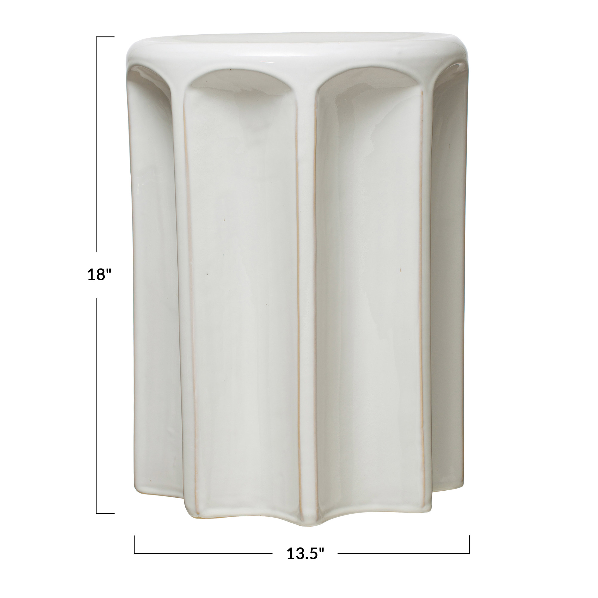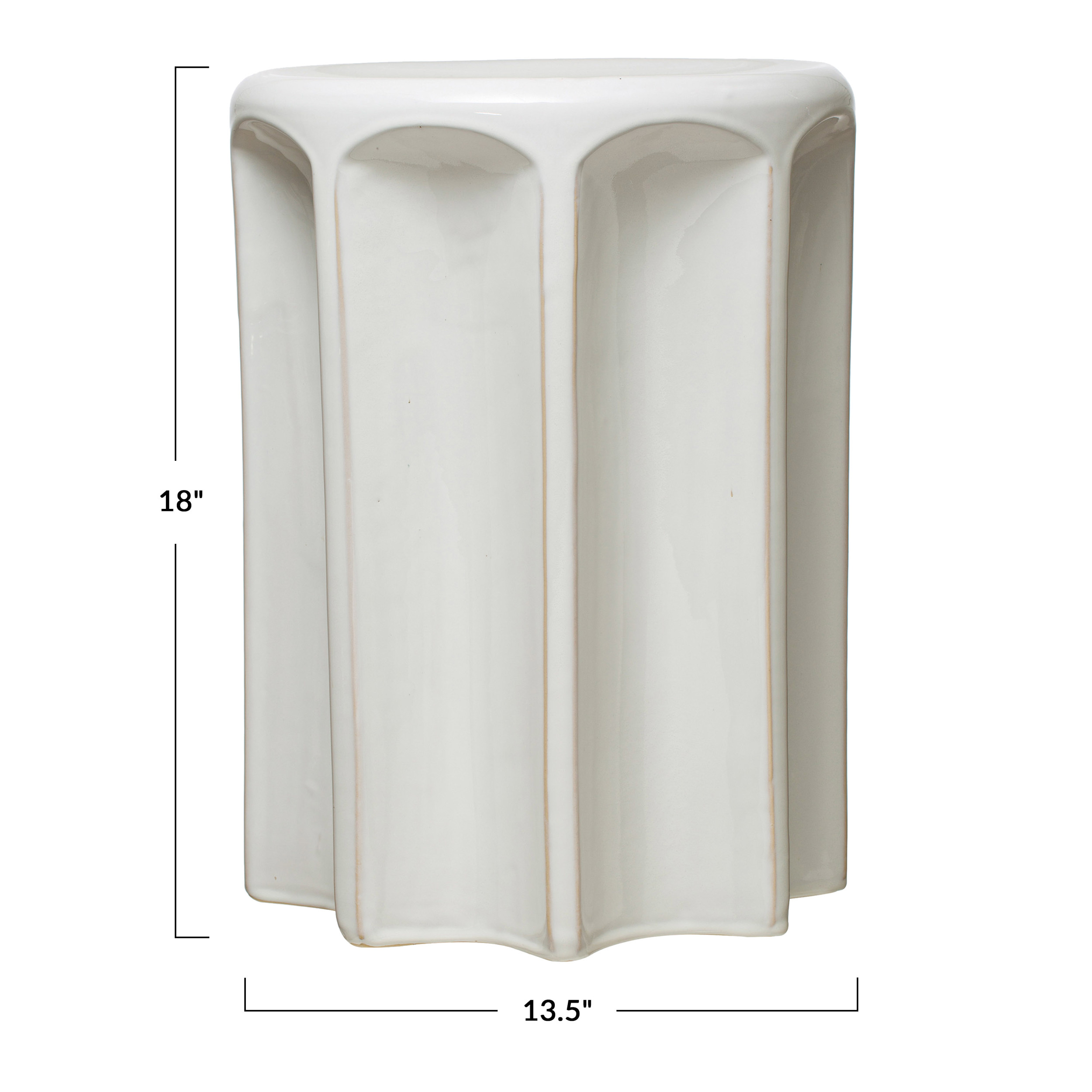 Catalog Name: 13-1/2" Round x 18"H Sculpted Stoneware Stool/Table, White, Truck Ship