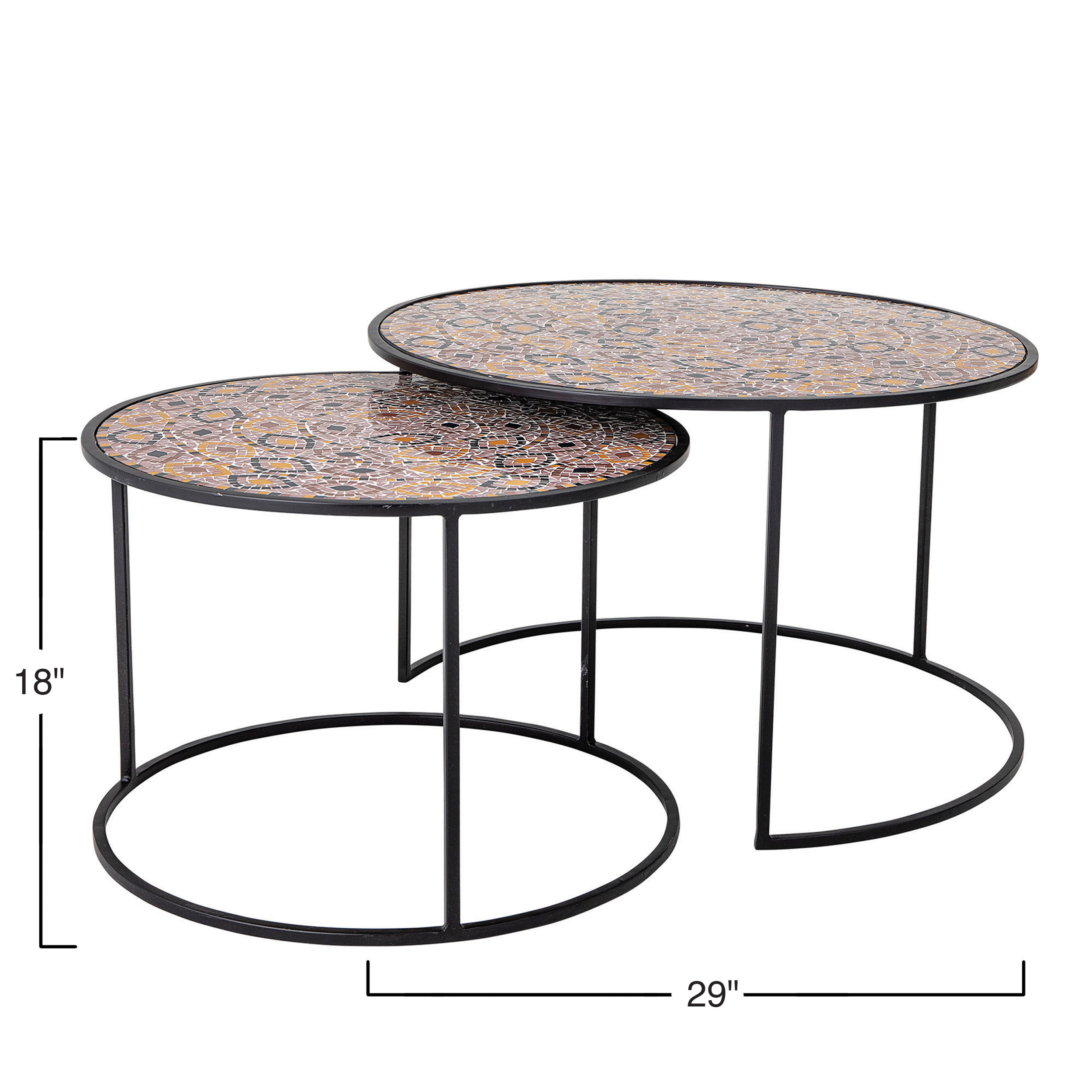 Catalog Name: 29" Round x 18"H & 23" Round x 16"H Metal Nesting Tables w/ Handmade Mosaic Glass Tops, Multi Color, Set of 2