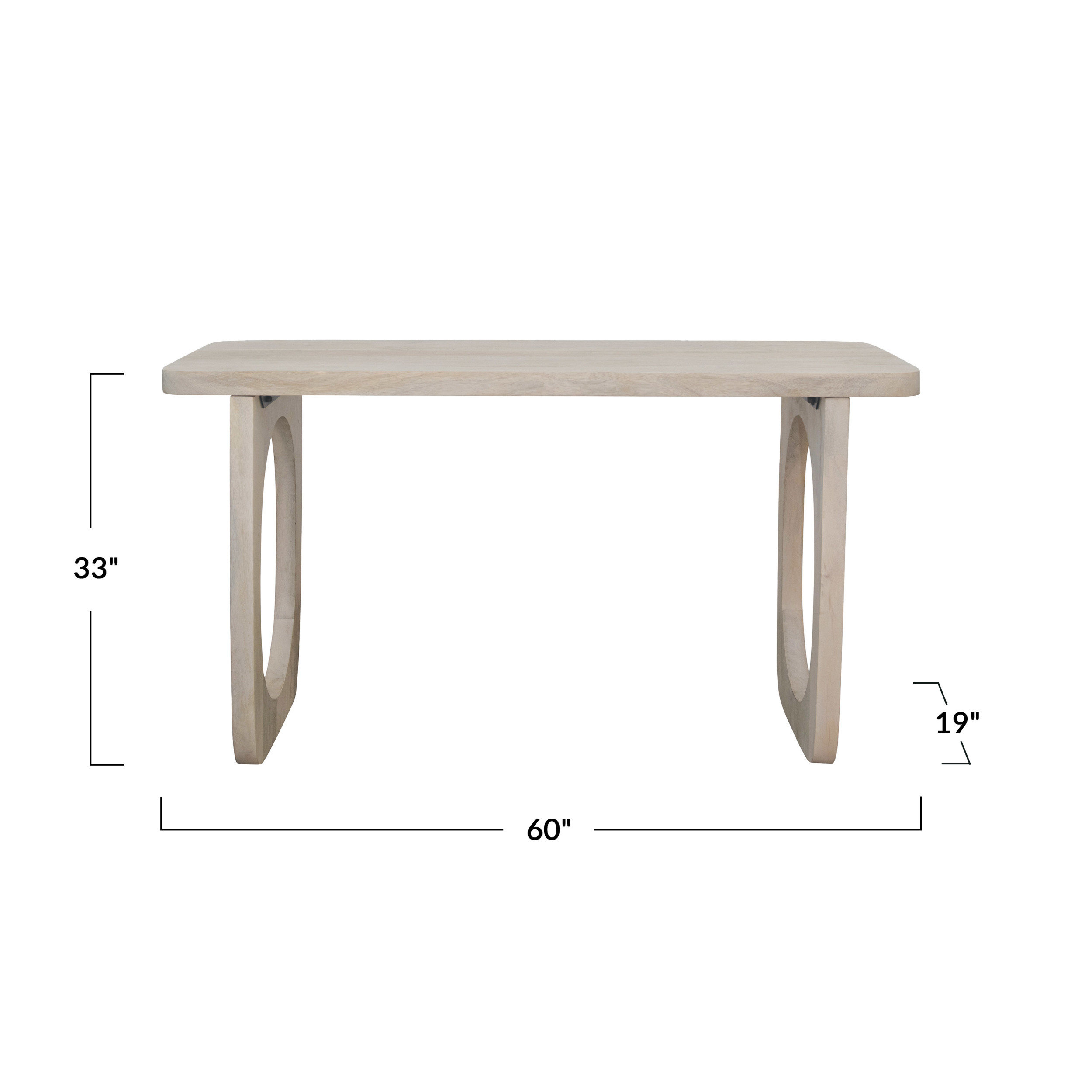Catalog Name: 60"W x 19"D x 33"H Mango Wood Console Table, Bleached, KD, Truck Ship