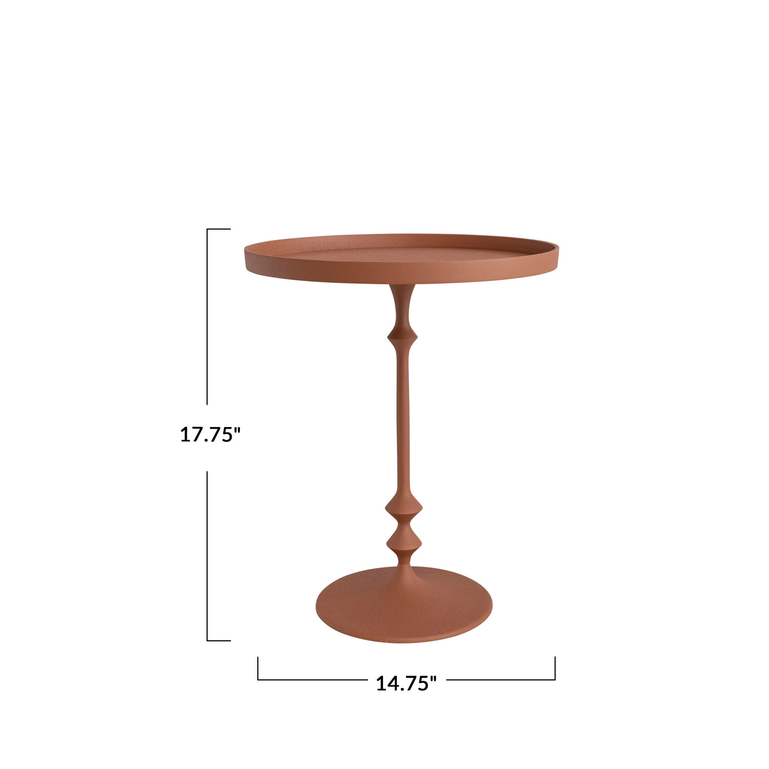 Catalog Name: 14-3/4" Round x 17-3/4"H Metal Table, Sand Finish, Matte Sienna Color, KD