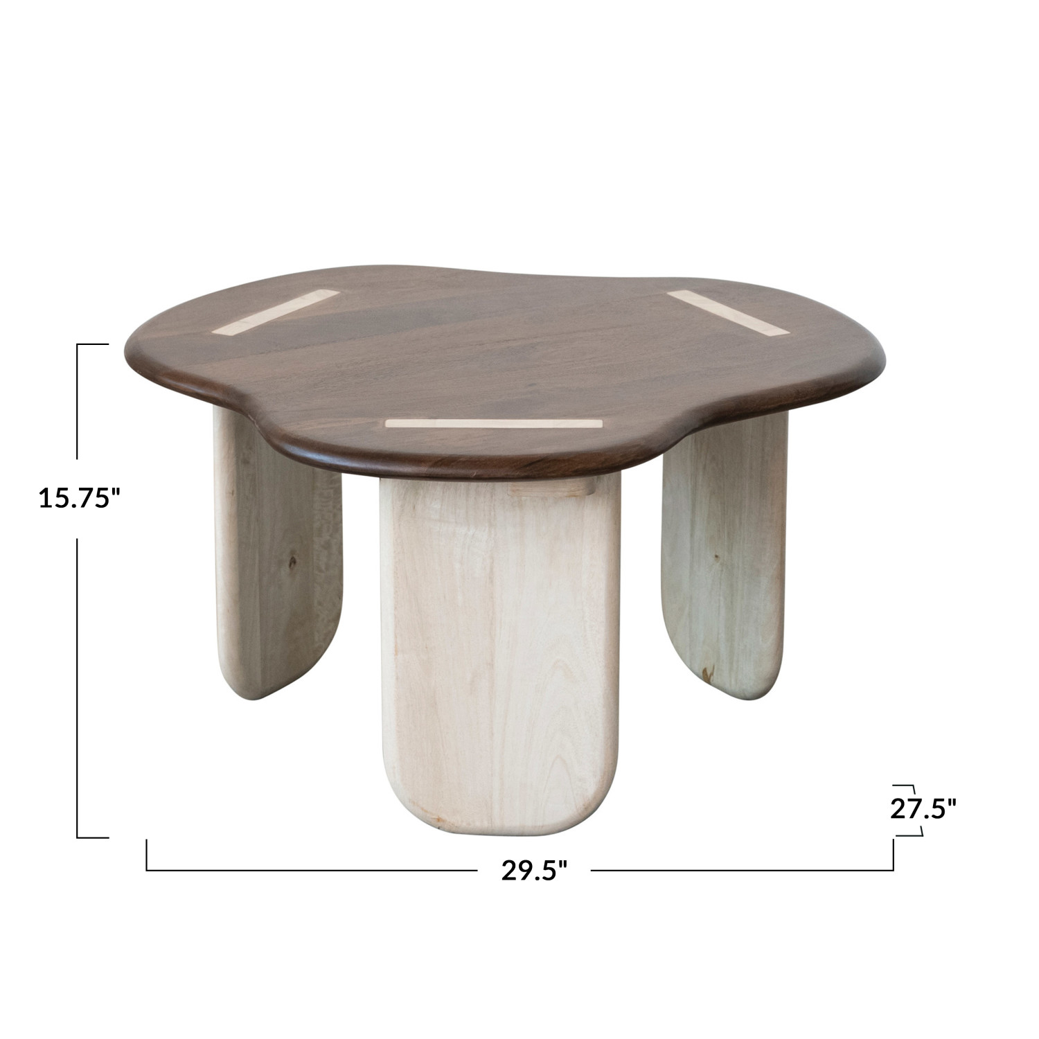 Catalog Name: 29-1/2"L x 27-1/2"W x 15-3/4"H Mango Wood Organic Shaped Coffee Table, Bleached & Walnut Finish, KD, Truck Ship