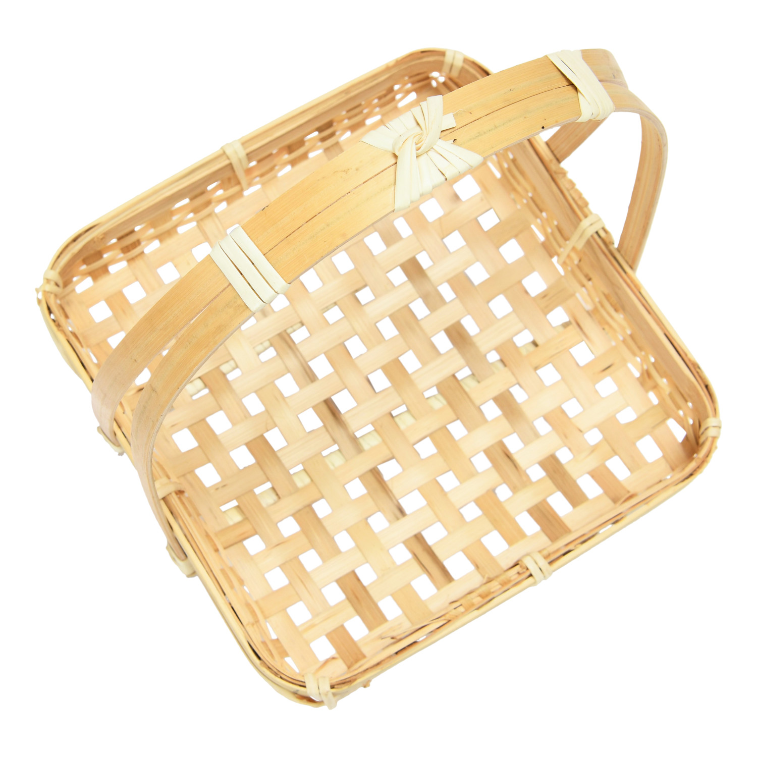 Catalog Name: 7-1/2" Square x 9-1/2"H Hand-Woven Bamboo Stand w/ Removable Tray, Natural, Set of 2
