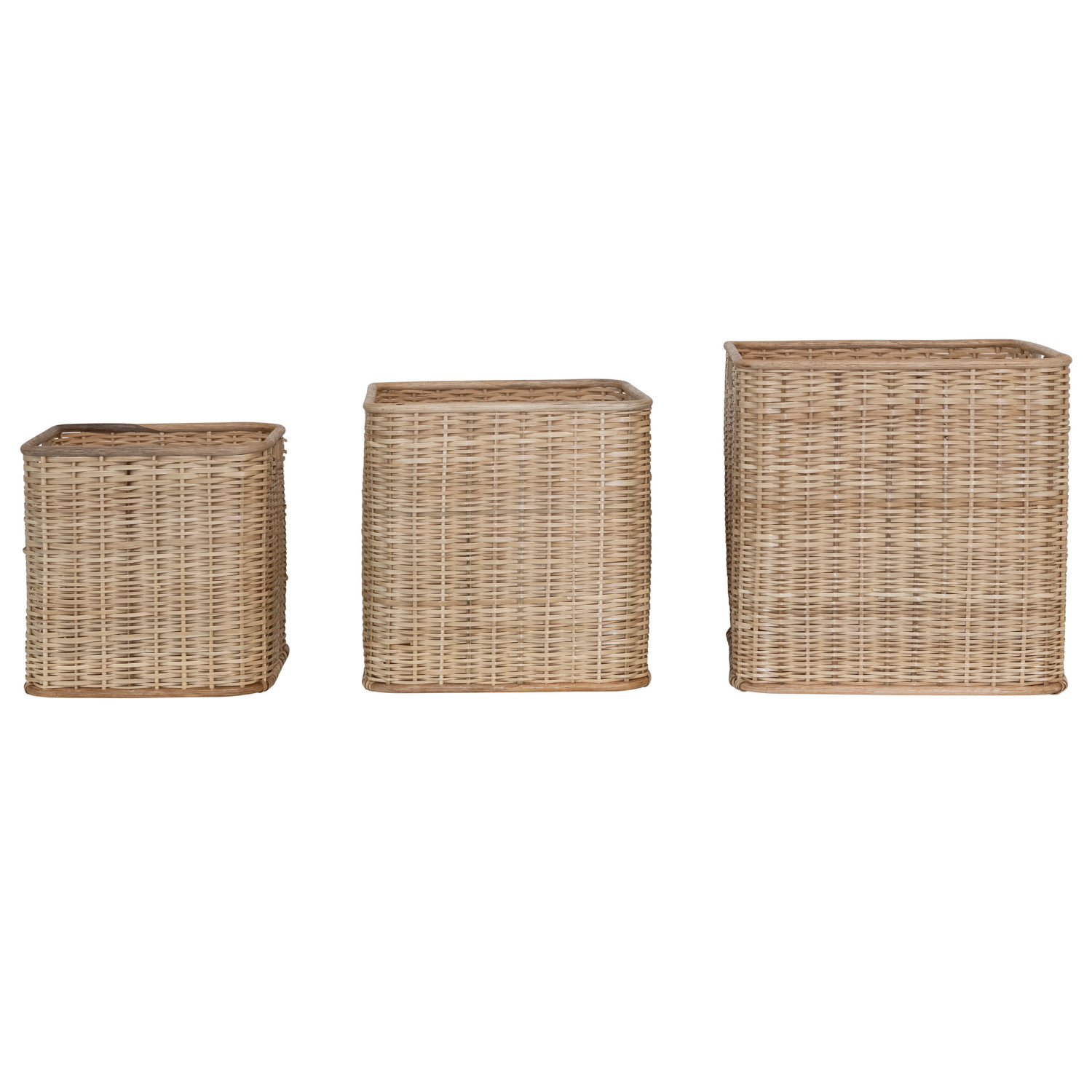 Catalog Name: 16" Square x 16"H, 14" Square x 14"H & 12" Square x 12"H Hand-Woven Palm & Rattan Baskets w/ Handles, Natural, Set of 3
