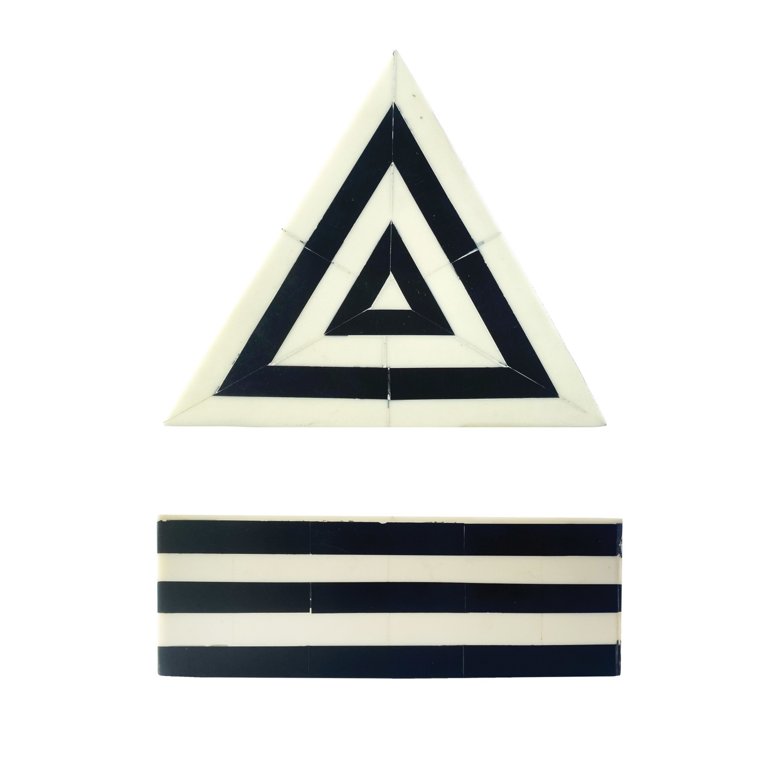 Catalog Name: 7"L x 6"W x 2-1/2"H MDF & Resin Triangular Striped Box w/ Lid, Black & White
