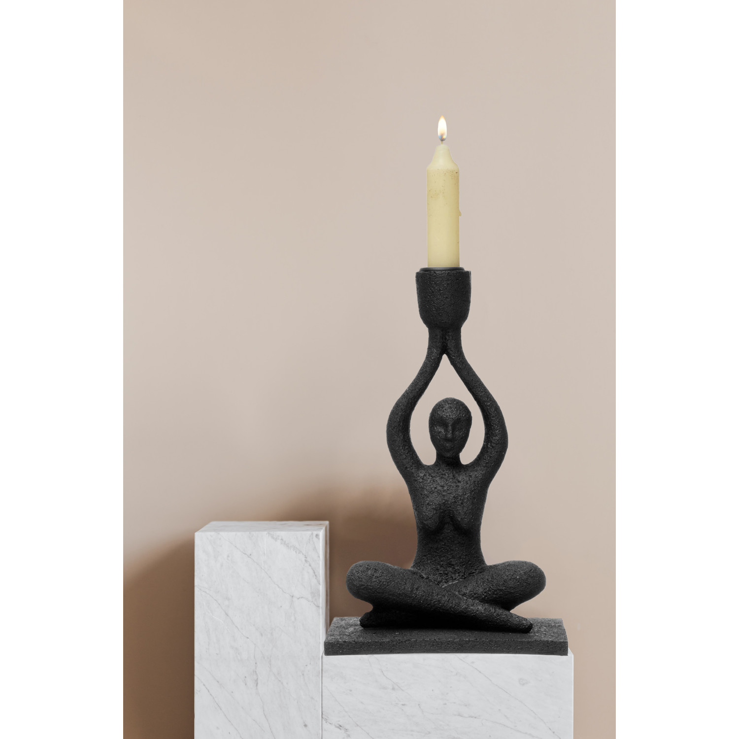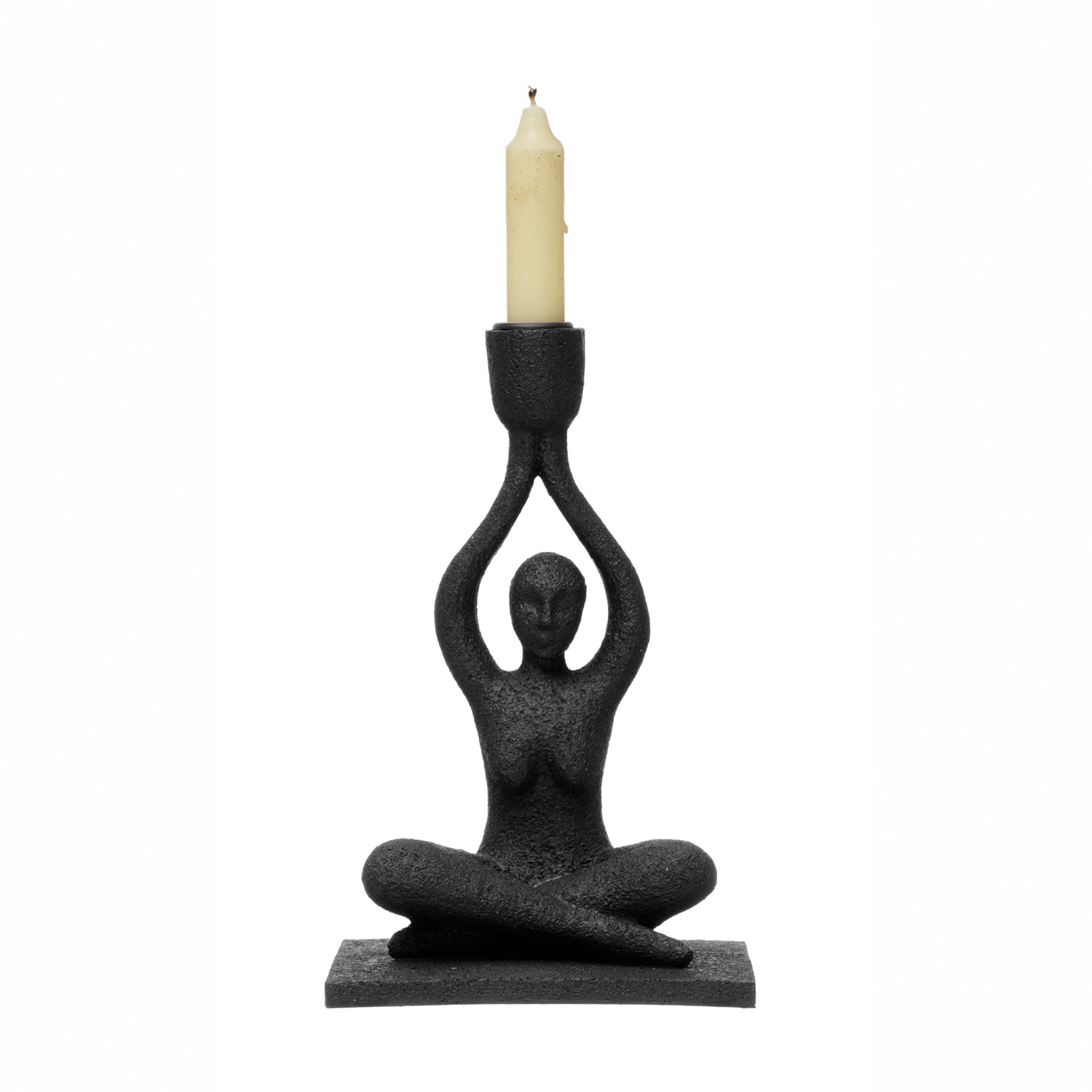 Catalog Name: 6"L x 4-1/4"W x 9-1/4"H Resin Sitting Figure Taper Holder, Black