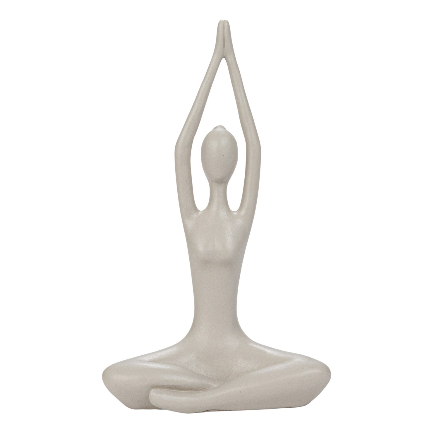 This yoga figure and glass votive candle holder set is a beautiful and soothing decoration for the space. It includes a round wood footed tray with six glass votive holders and a metal yoga figure. The glass votive holders have a multicolor finish and a textured surface that reflects the candle light. The metal yoga figure has a detailed design and graceful pose, inspiring calmness and harmony. This set can be used as a decorative accent on a coffee table, nightstand, shelf, or windowsill, or as a centerpiece or gift for someone who loves yoga and candles. It brightens up the space and mood.