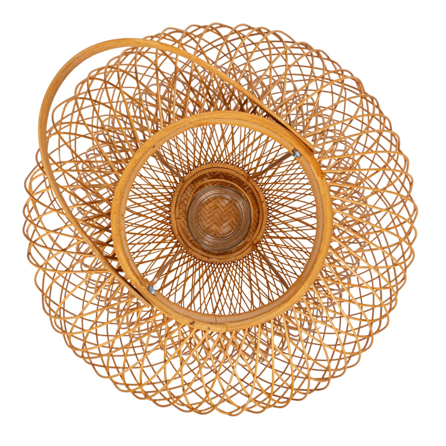Catalog Name: 13-3/4" Round x 19-3/4"H Hand-Woven Bamboo Lantern w/ Glass Insert & Handle, Natural (Holds 3" Pillar)