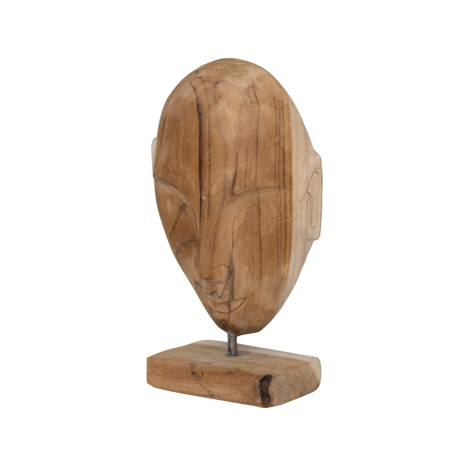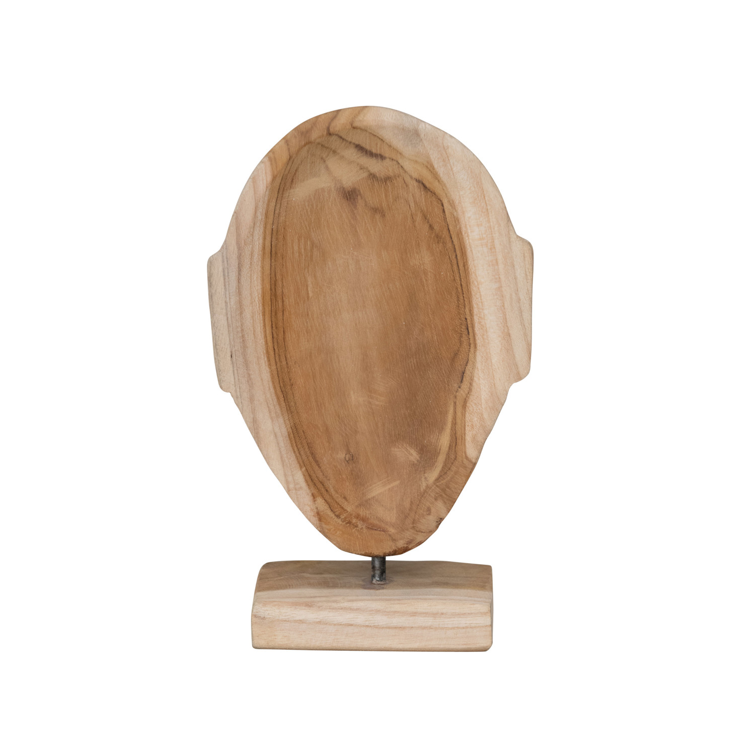 Catalog Name: 5"L x 2-1/4"W x 8"H Hand-Carved Teakwood Face on Stand, Natural (Each One Will Vary)