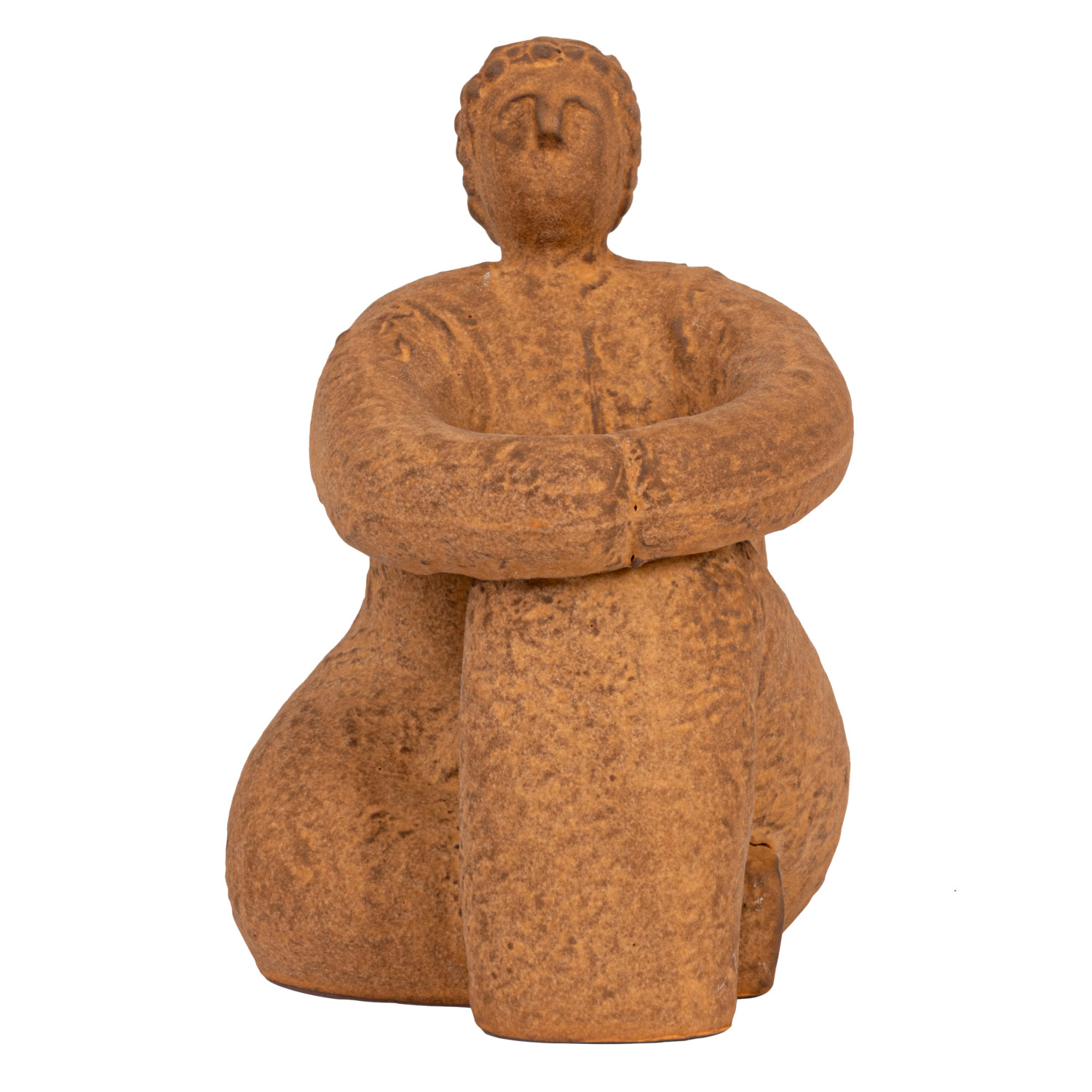 Catalog Name: 4-1/4"L x 3-3/4"W x 5-3/4"H Stoneware Sitting Woman Sculpture, Reactive Glaze, Matte Terra-cotta Color (Each One Will Vary)