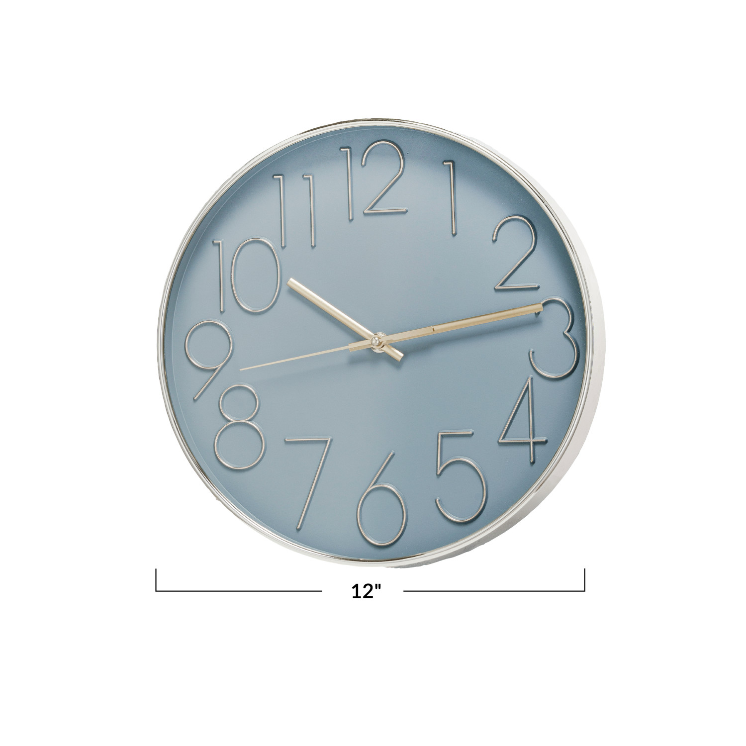 Catalog Name: 12" Round Plastic Wall Clock, Gold Finish, Grey (Requires 1-AA Battery)