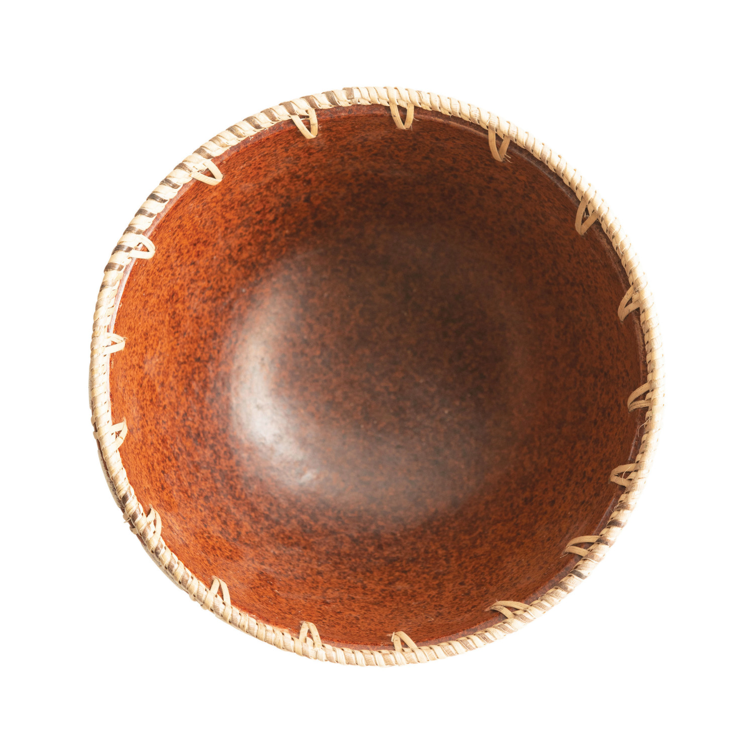 Catalog Name: 10" Round x 5"H & 8" Round x 4-1/4"H Decorative Handmade Terra-cotta Bowls w/ Woven Rattan Stitching, Natural & Sand Color, Set of 2, Truck Ship