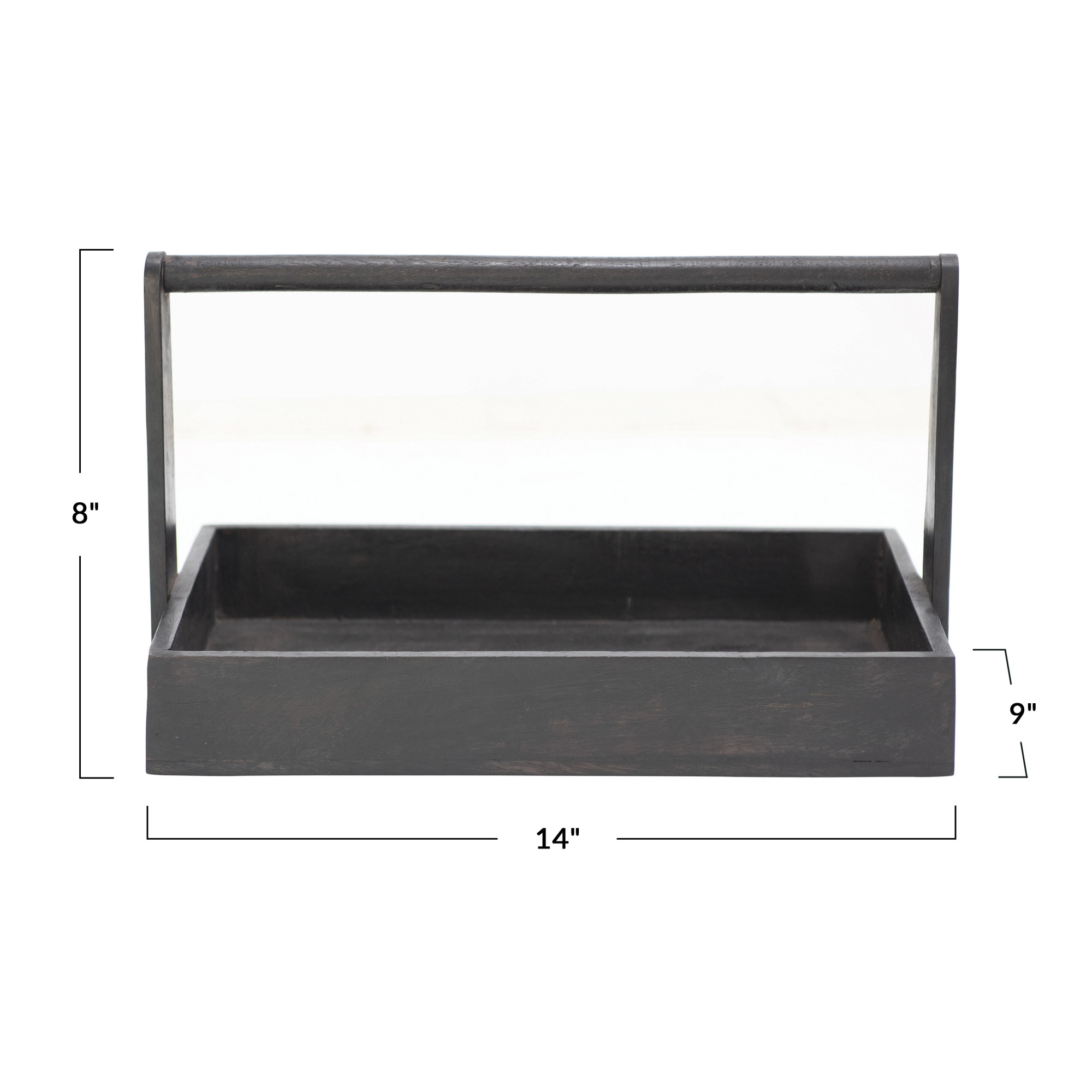 Catalog Name: 15"L x 9"W x 9"H Decorative Mango Wood Tray w/ Handle, Black