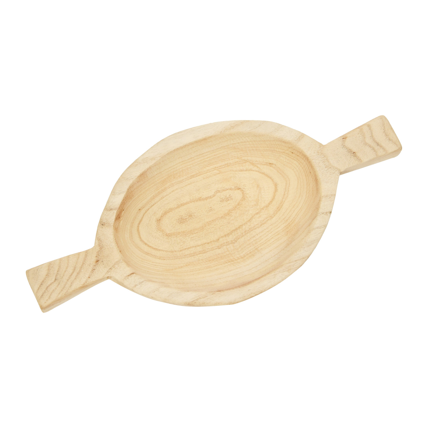 This unique paulownia wood tray features stunning organic construction with functionally stylish carved handles. Paulownia wood tray with handles. Add a touch of natural beauty to any gathering space with this beautiful organic tray. Made from 100% paulownia wood.