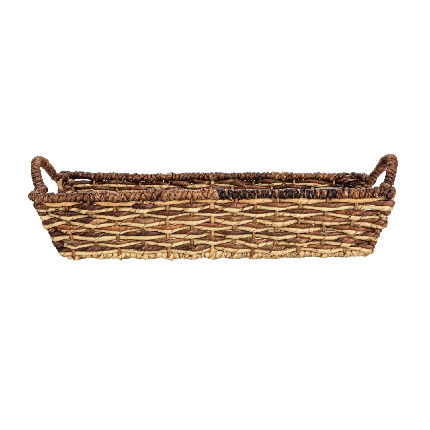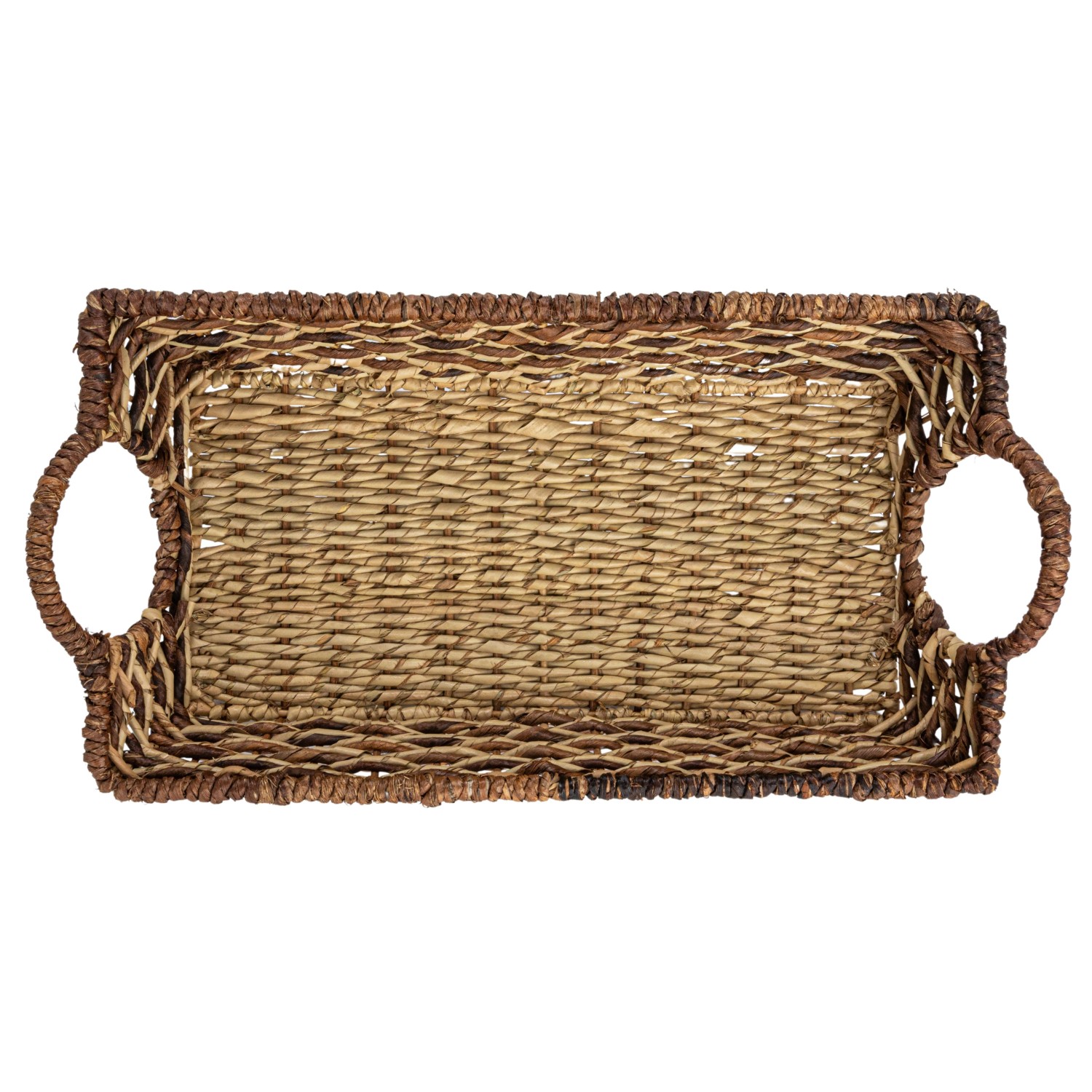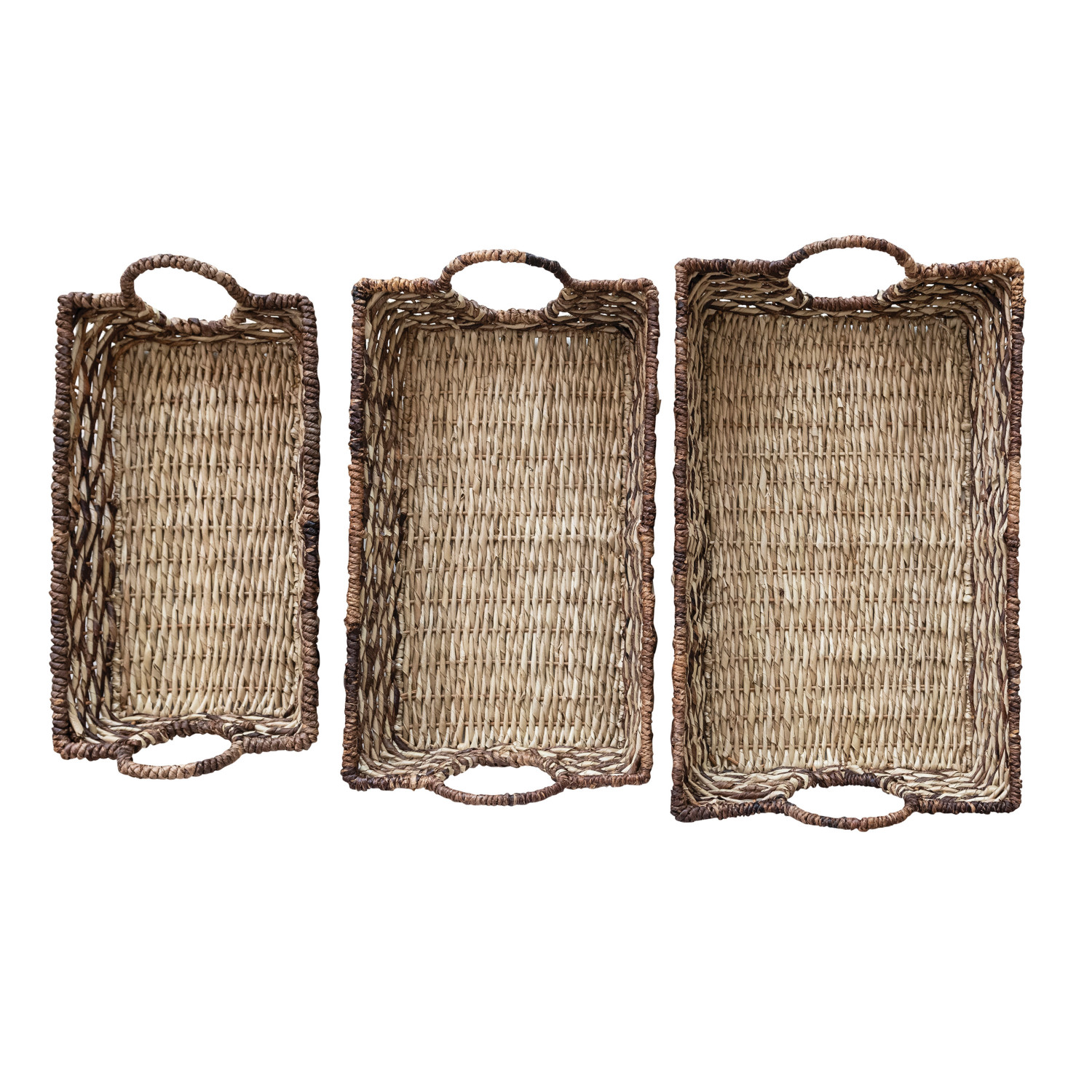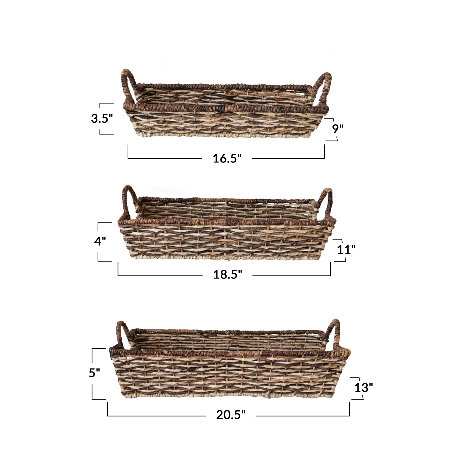 Catalog Name: 20-1/2"L x 13"W x 5"H, 18-1/2"L x 11"W x 4"H & 16-1/2"L x 9"W x 3-1/2"H Decorative Hand-Woven Buri & Abaca Trays w/ Handles, Natural & Brown, Set of 3