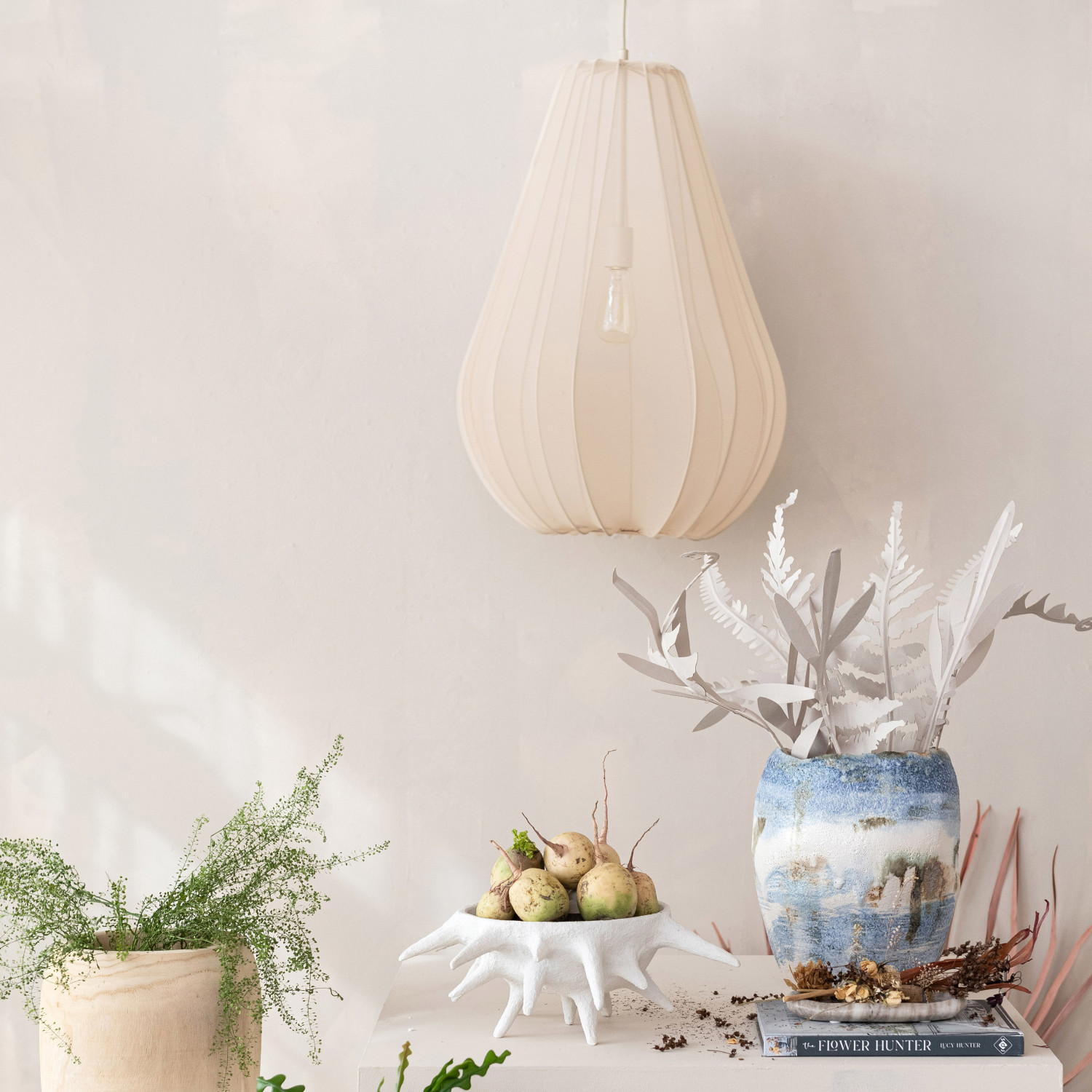 Fabric & Wire Pendant Lamp, 6' Cord, Cream Color