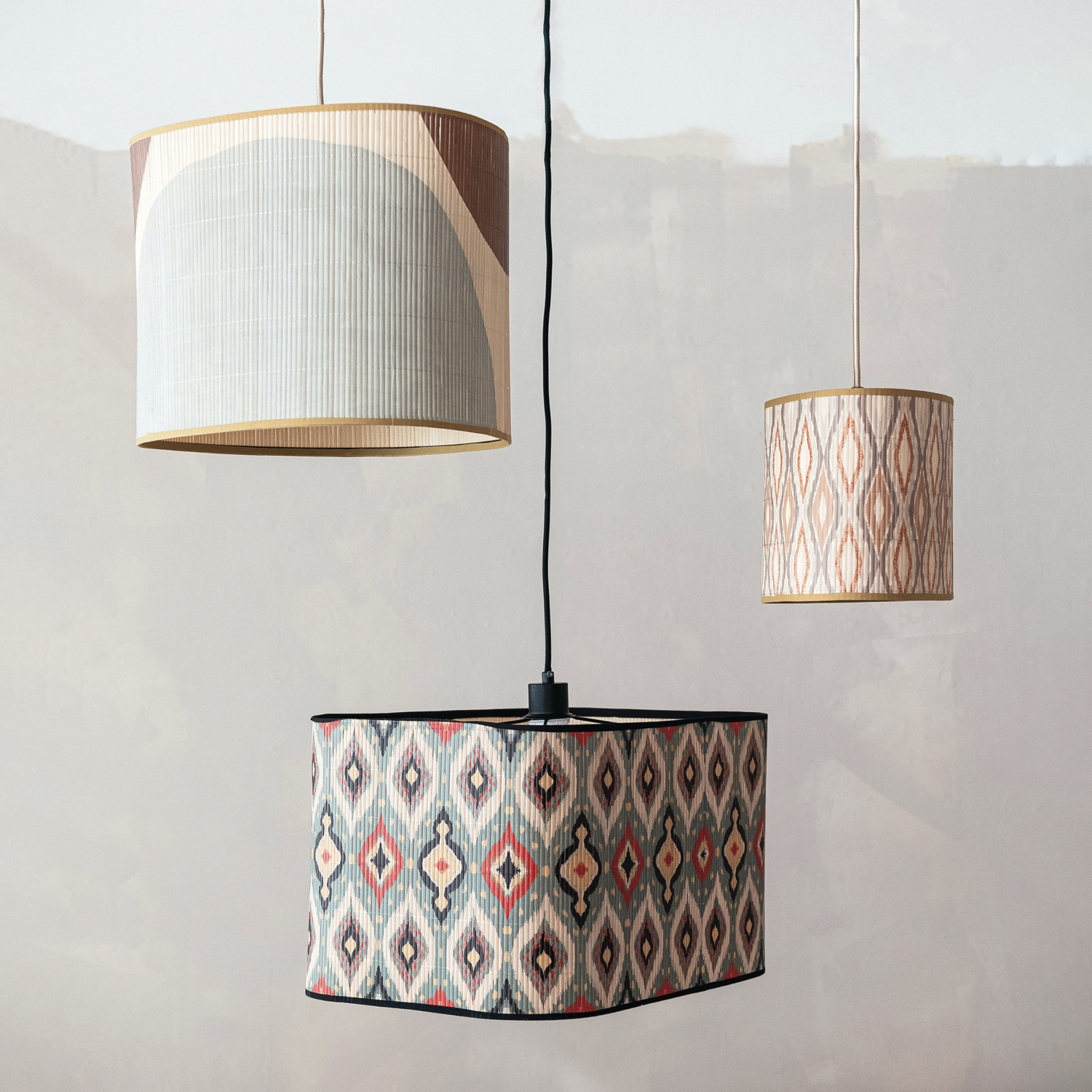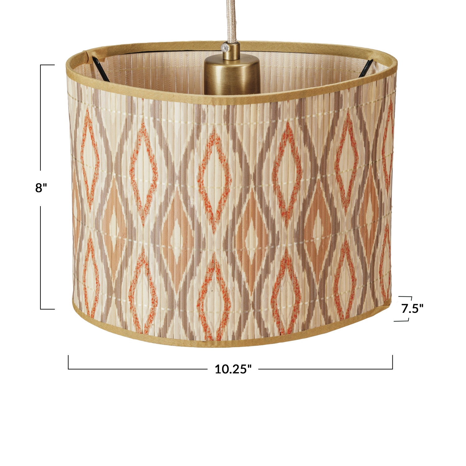 Catalog Name: 10-1/4"L x 7-1/2"W x 8"H Bamboo Organic Shaped Pendant Lamp w/ Printed Pattern, 8' Fabric Cord, Multi Color (Hardwire Only)